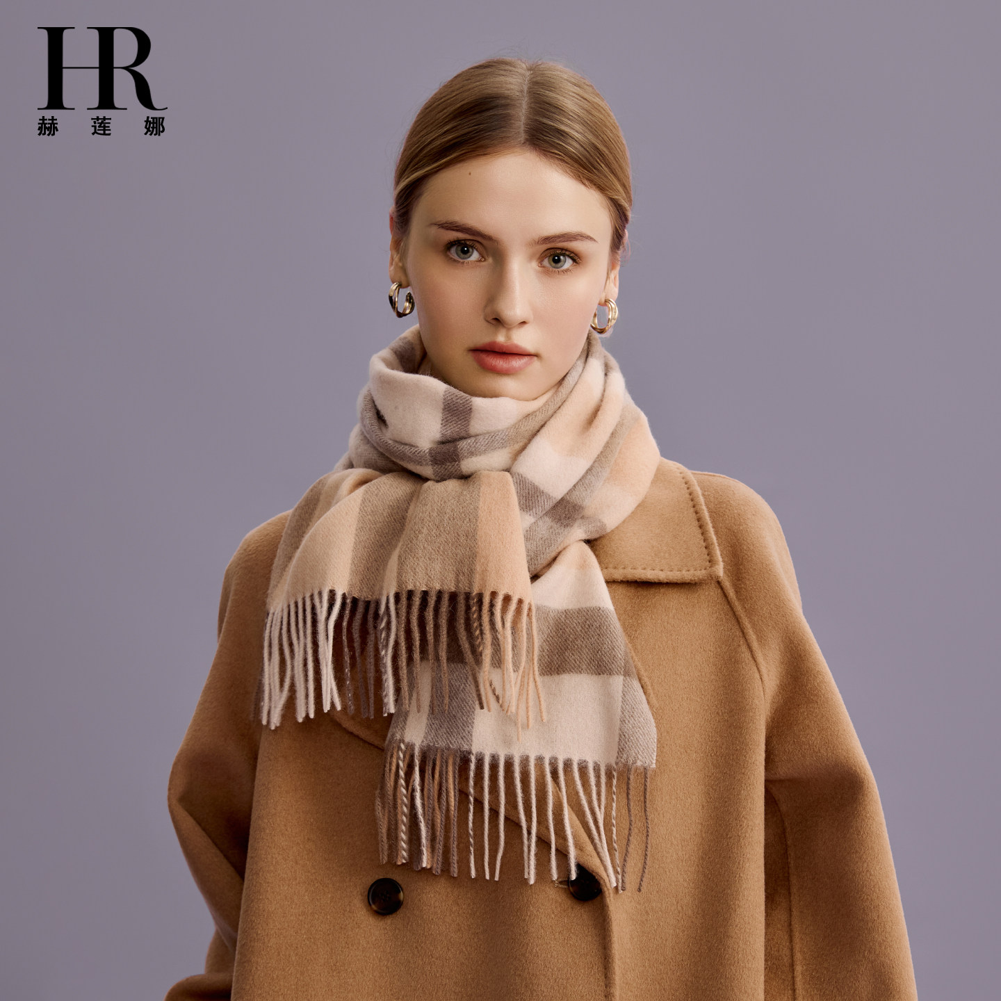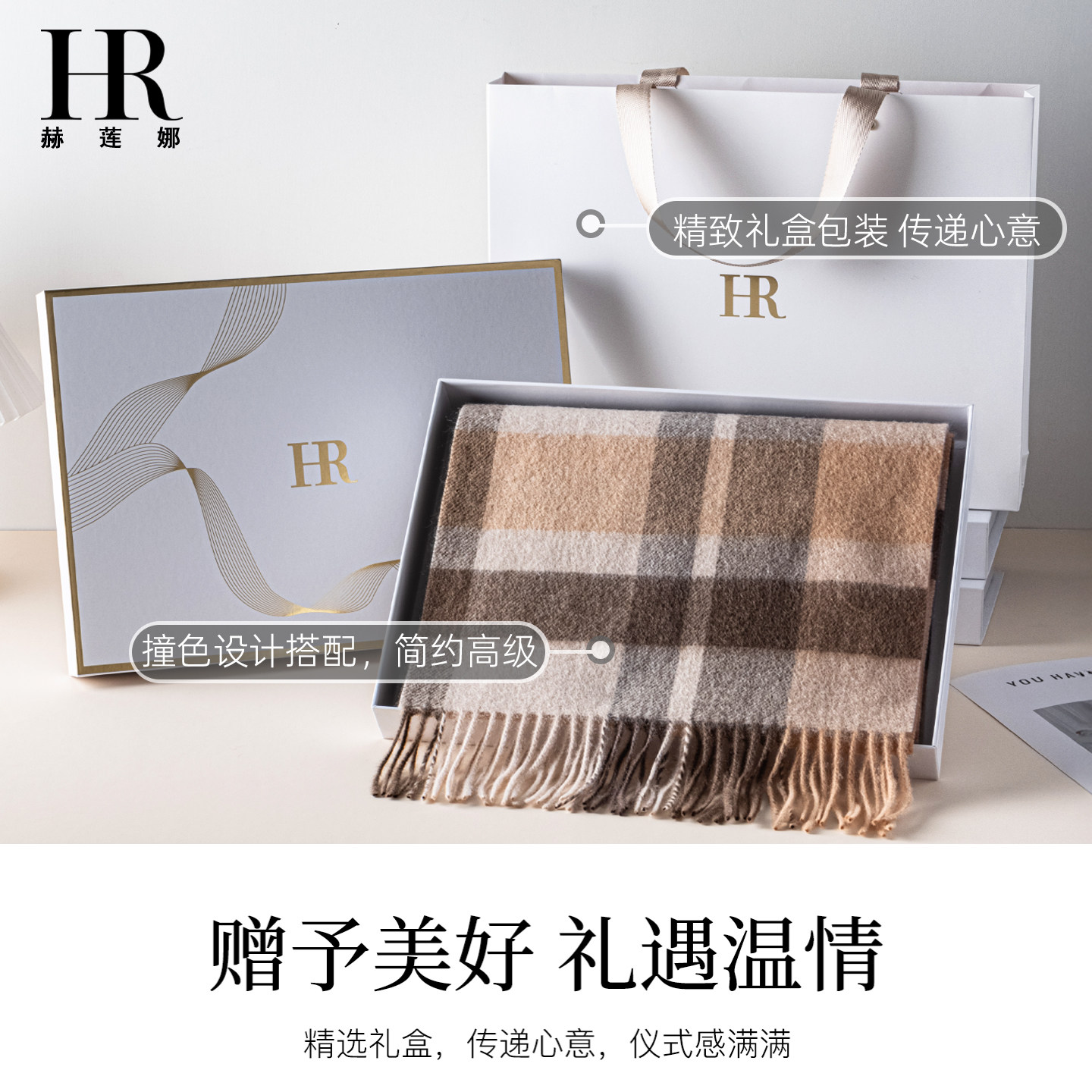 📚 HR赫莲娜正品100%羊毛围巾披肩外搭女2025新款轻奢高级感格子围脖