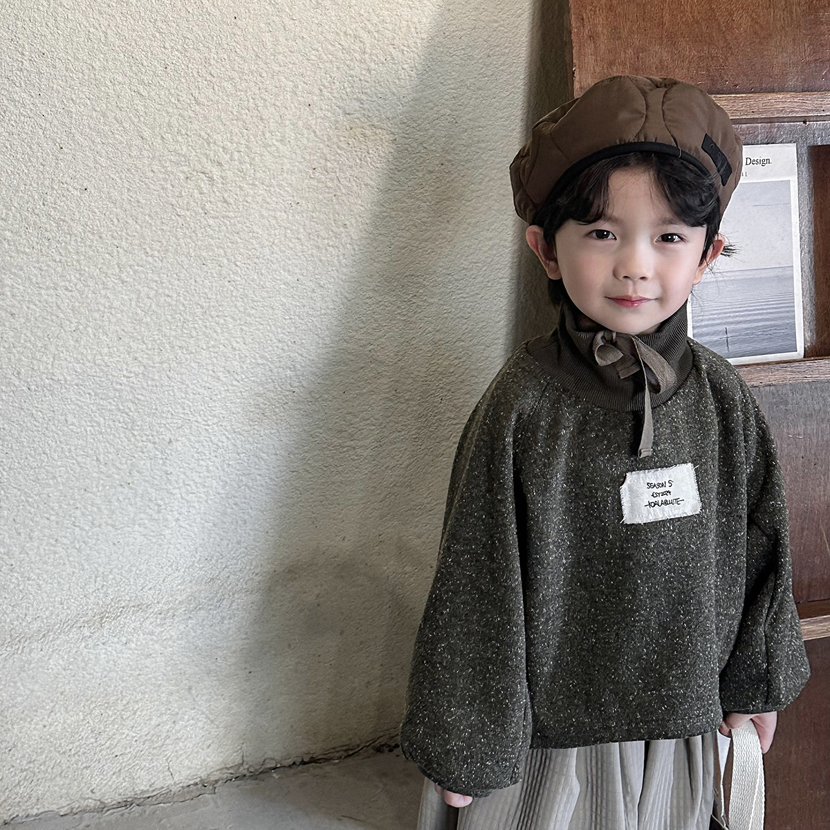 📚 暮晨家新款冬装2025男童高领加绒卫衣男女童森系麻点加厚上衣外套