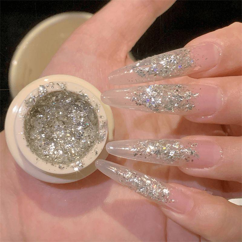 📚 美甲店专用爆闪银箔粉璀璨银河高光碎片粉超薄指甲亮片胶