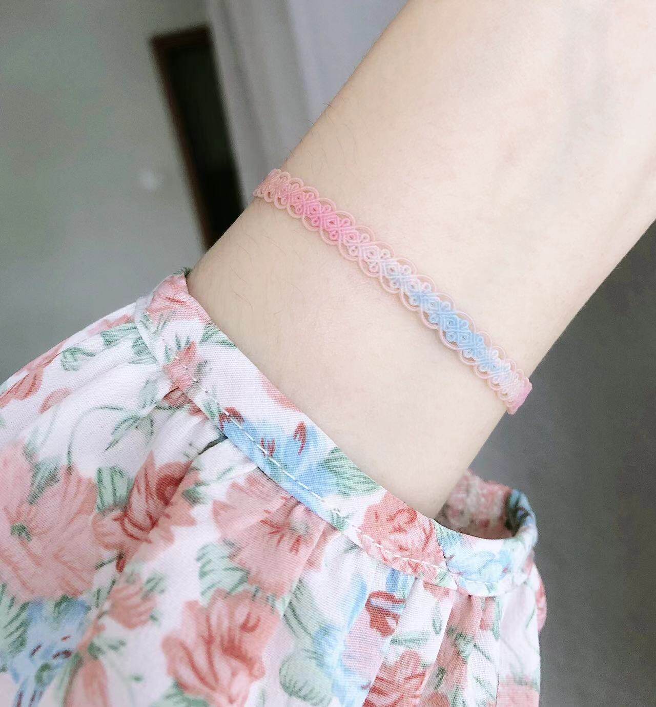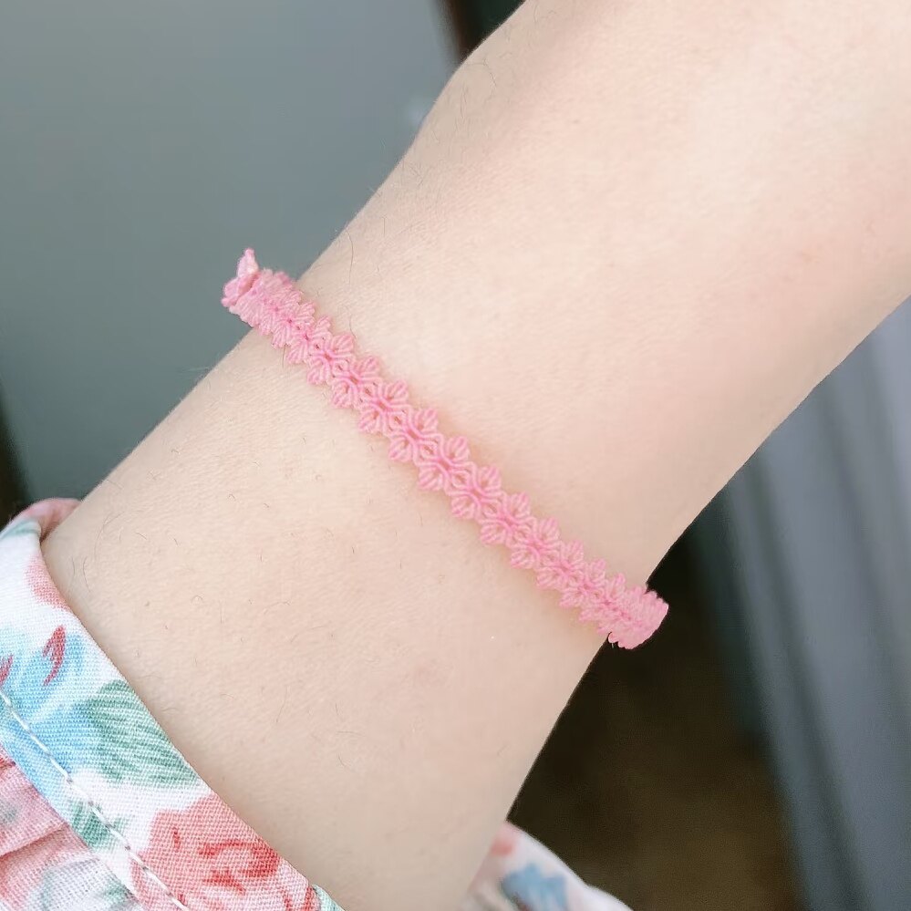 📚 手工编织0.1腊线窥月小人国樱花粉般若手绳女生极细款定制尺寸