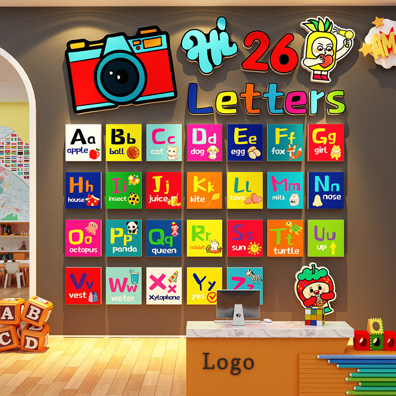 📚 英语角教室布置装饰工作培训班机构26字母文化墙贴幼儿园环创主题