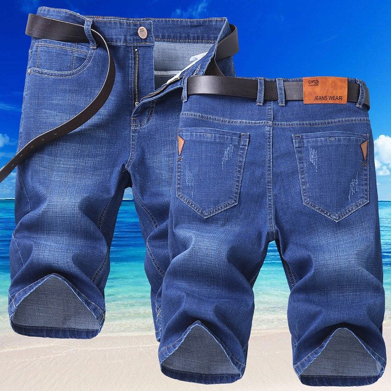 📚 Summer Slimfit Mens Denim Shorts 5Point Casual Jeans Elastic