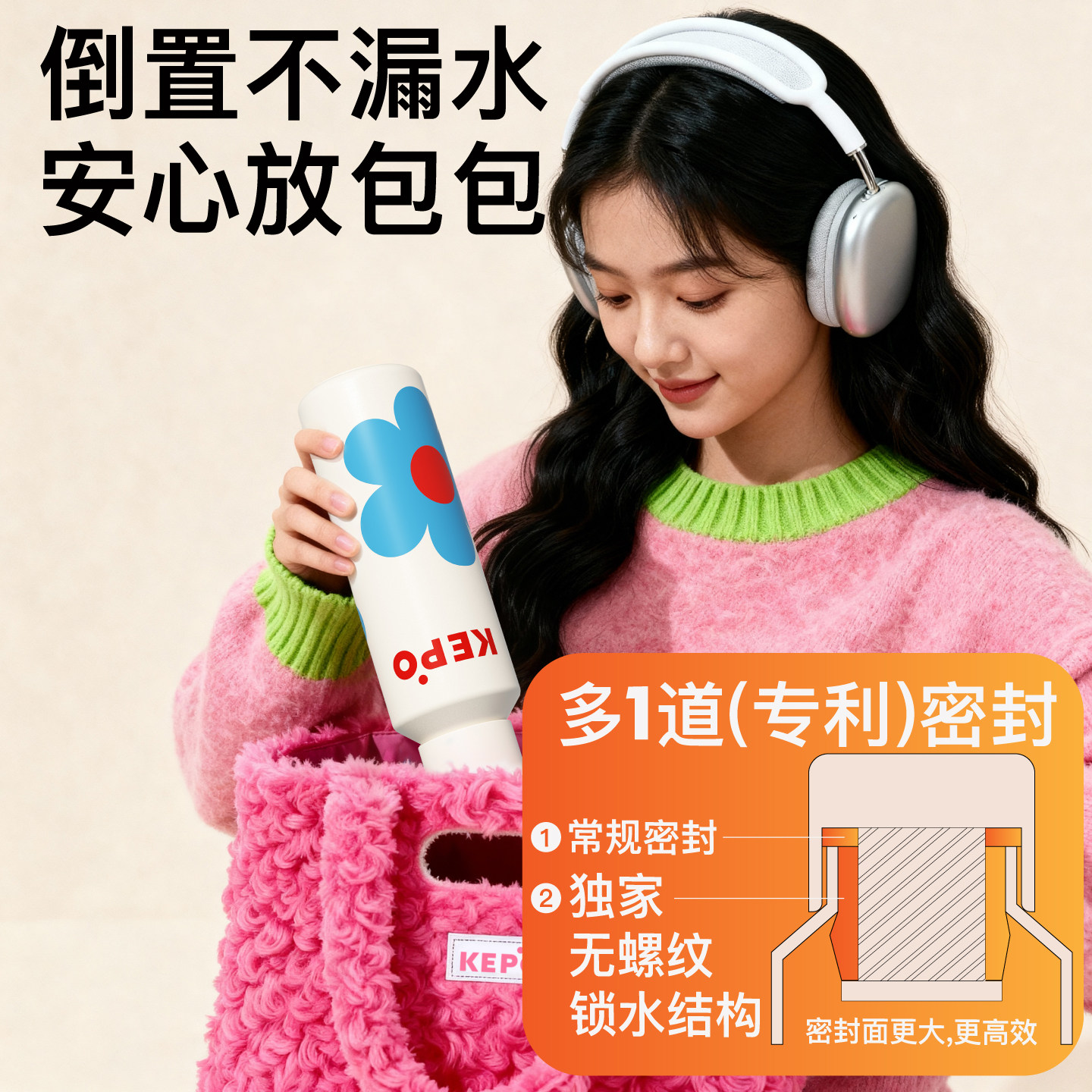 📚 KEPO保温杯女生水杯小巧便携大容量户外运动随行杯子新款高颜值