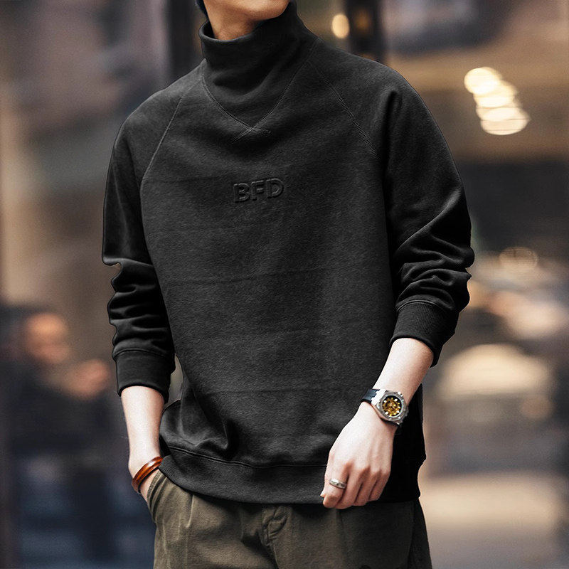 📚 HS秋季美式复古半高领卫衣男士2025春秋款加厚宽松纯色打底衫上衣