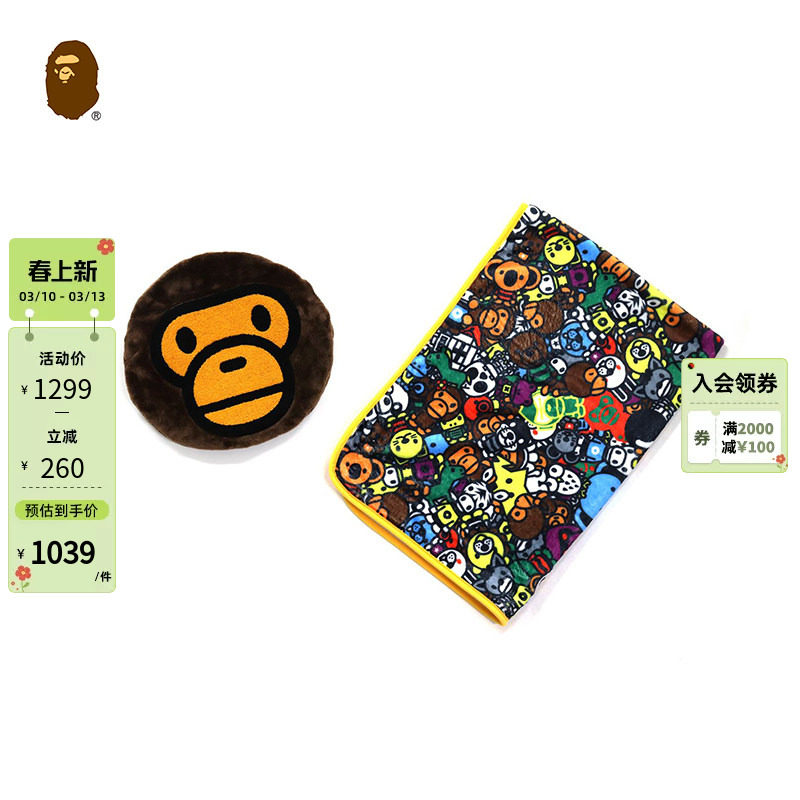 38¥ HU591 Z6GZUEDFDgl¥ https://m.tb.cn/h.i3h08Xi BAPE家居生活卡通BABY MILO动物满印图案两用绒毯抱枕382609H --------------------- 【原售价】1,299元 【现售价】1,299元。