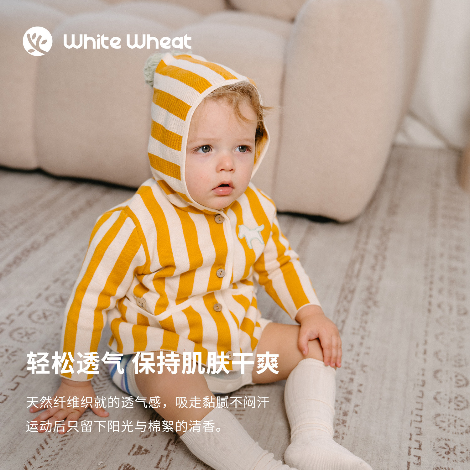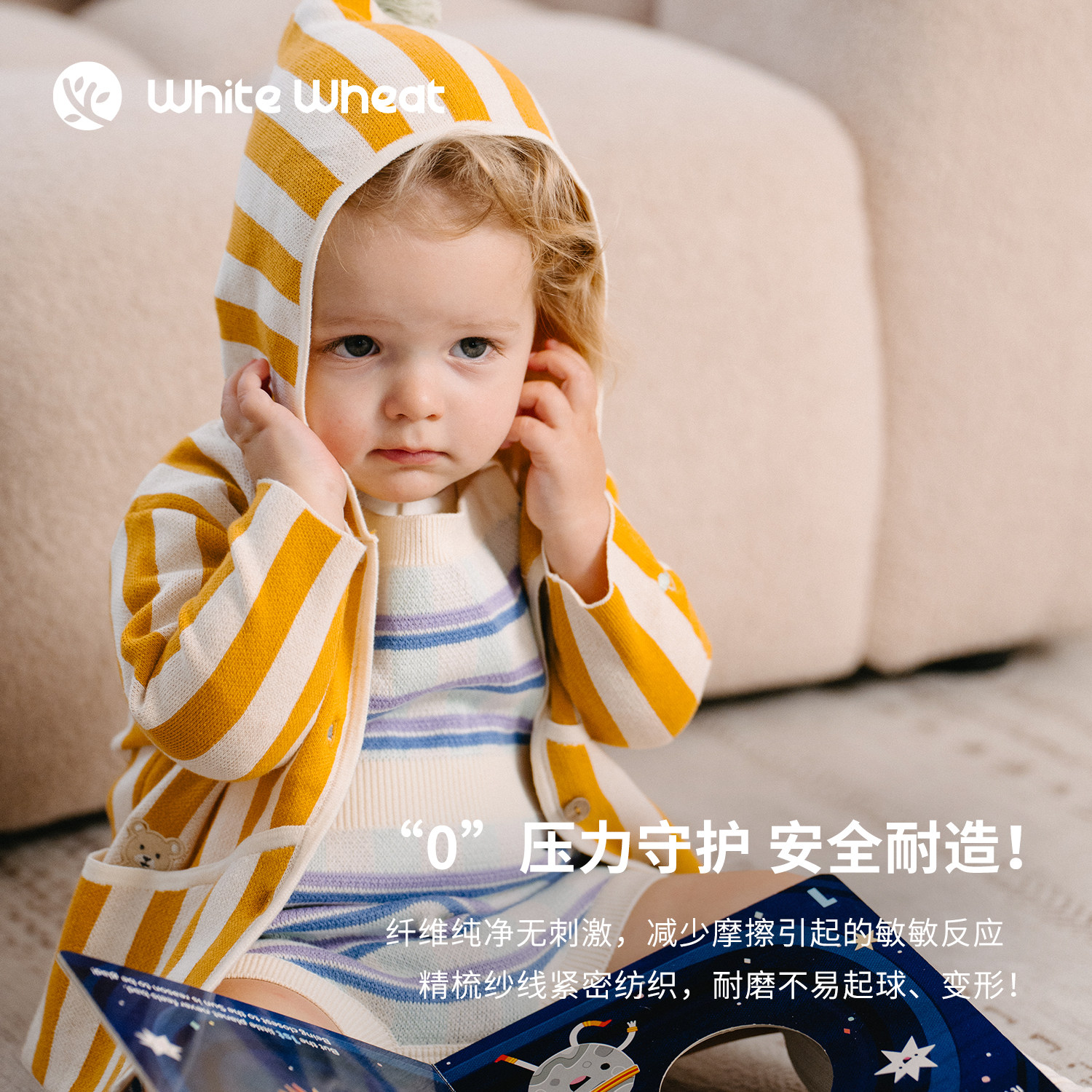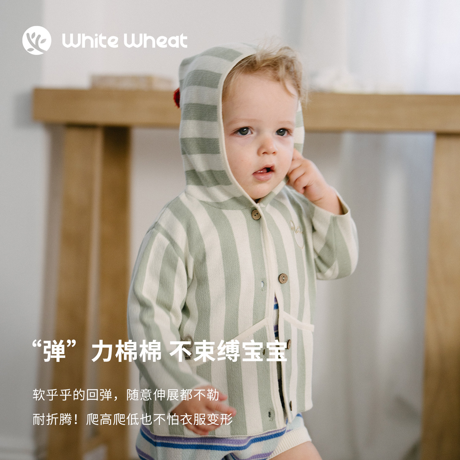 📚 whitewheat儿童26春季新款开衫外套男女童休闲纯棉毛衣连帽针织衫