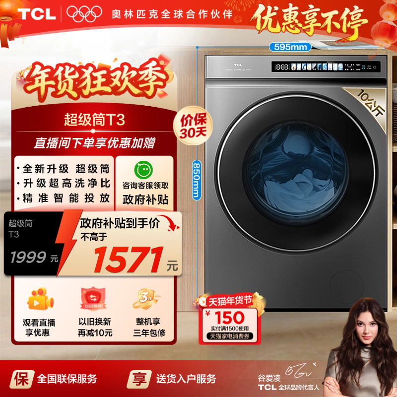 📚 TCL 10KG超级筒T3Pro精华洗滚筒洗衣机 洗烘一体大容量全自动家用