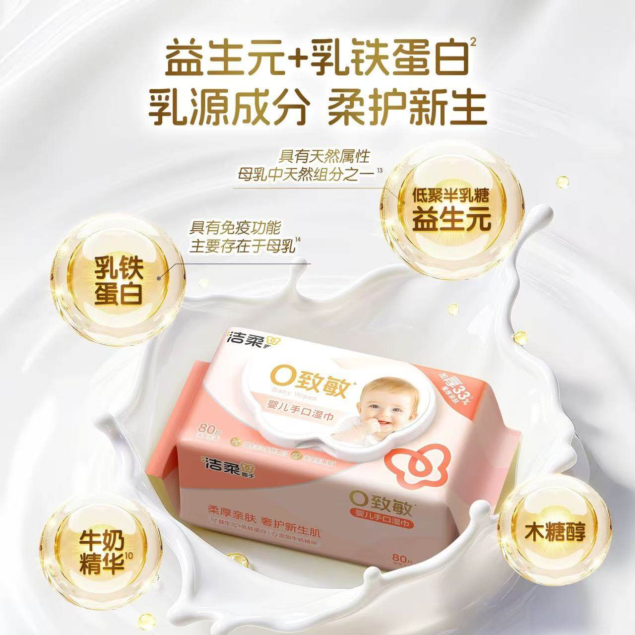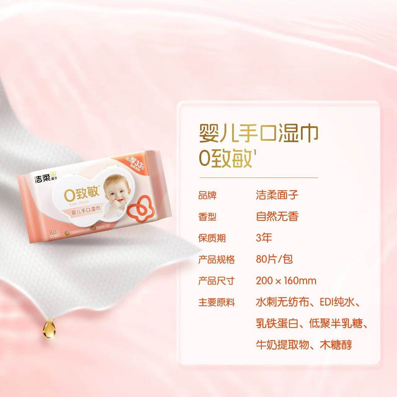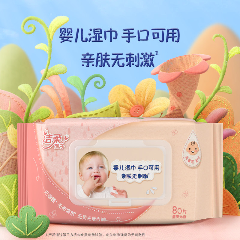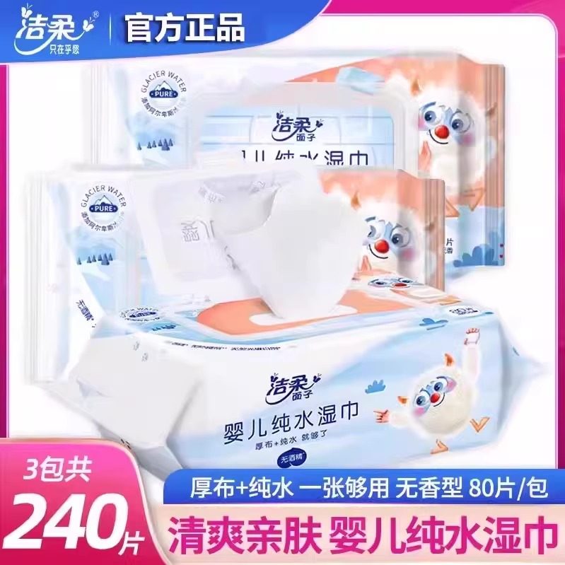 📚 洁柔婴儿宝宝湿巾屁屁手口用加厚加大湿巾纸纯水80抽洁肤巾家庭装