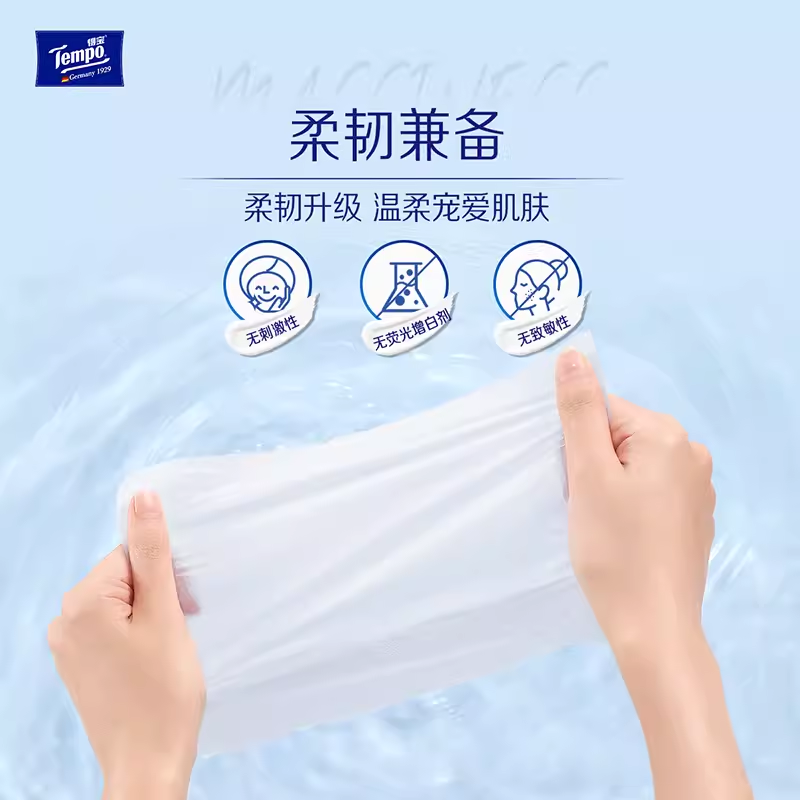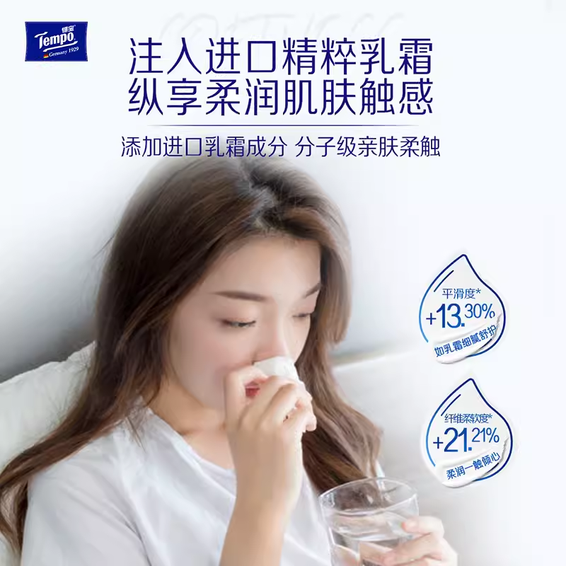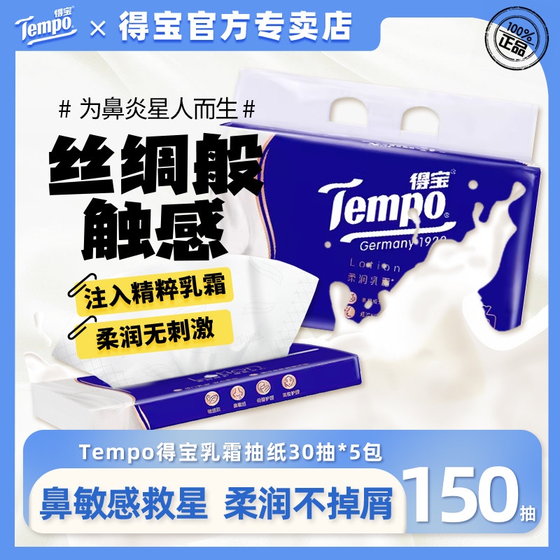 📚 Tempo得宝Lotion乳霜纸母婴可用婴儿保湿柔纸巾德宝30抽5包正装u