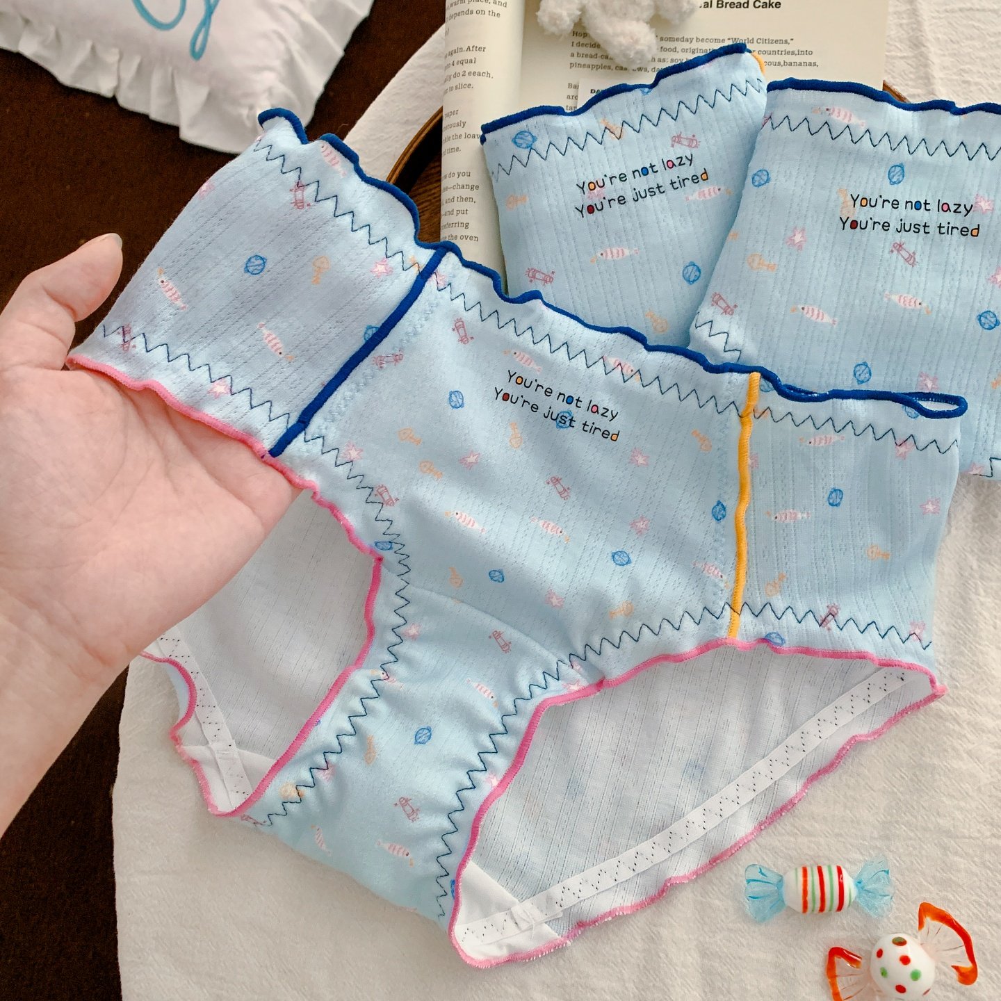 📚 游游小渔~可爱撞色卡通印花女士三角裤7A抑菌透气内裤女2026新款