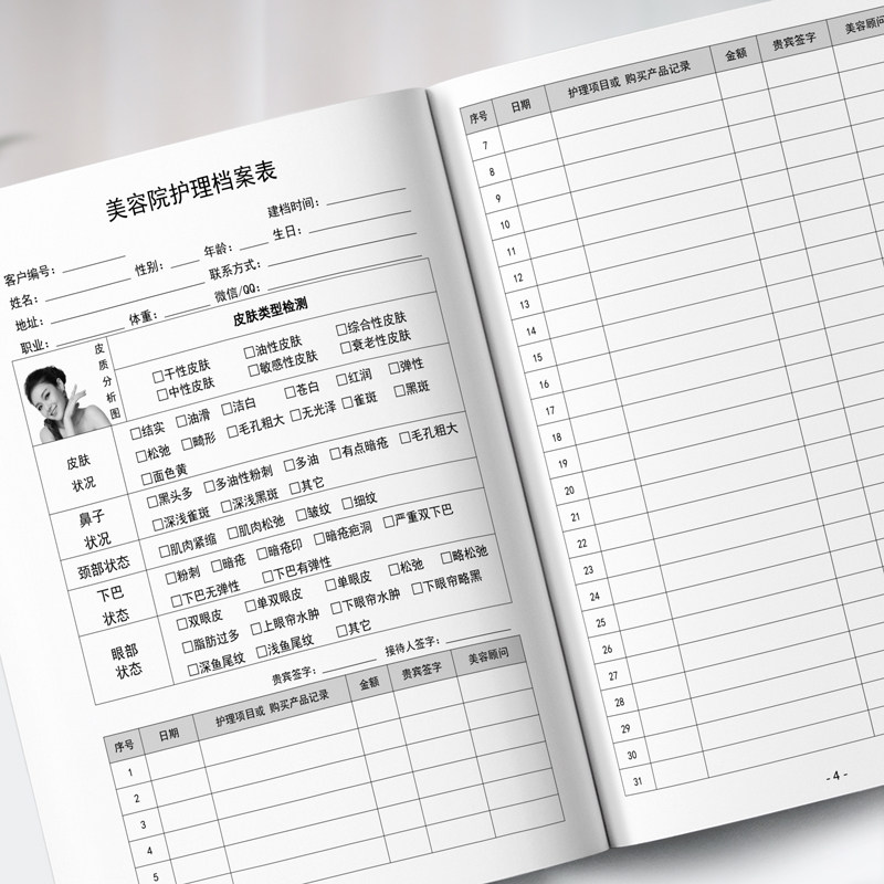 📚 美容院护理档案本美容院会员养生美体护肤品A4顾客皮肤管理会员客户消费记录表活页夹贵宾手册登记本定制