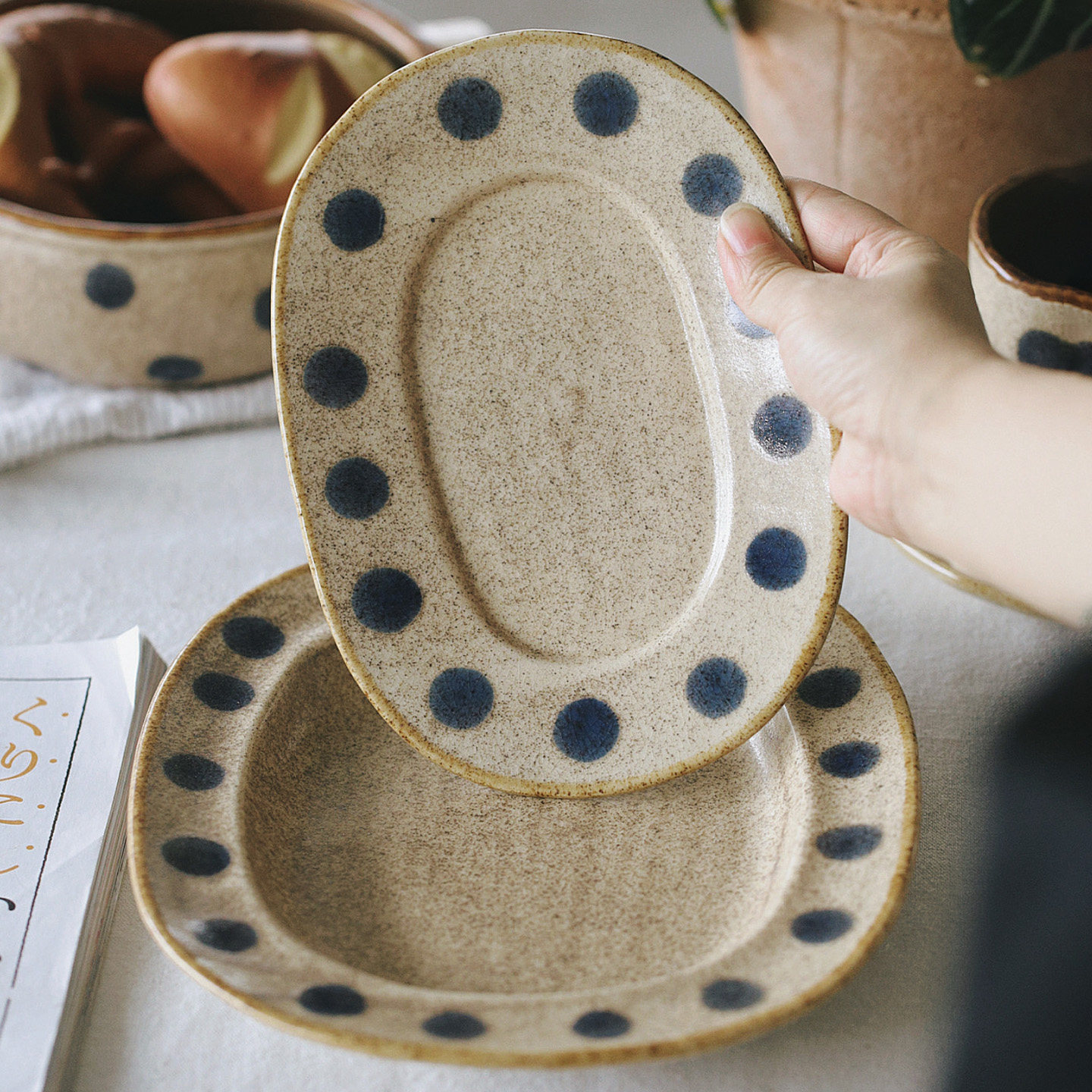📚 泽滕家ins风粗陶椭圆盘子甜品水果沙拉蔬菜意面欧式西餐牛排骨碟