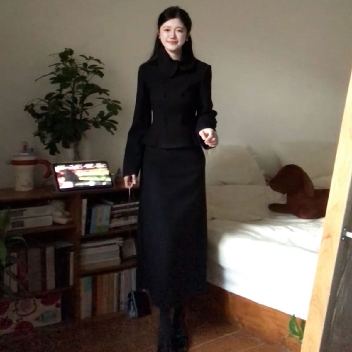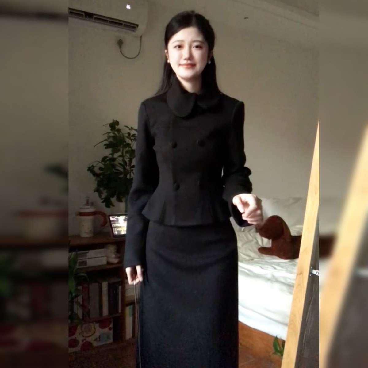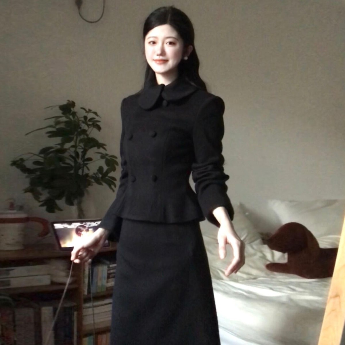 📚 千金气质收腰短款夹棉毛呢子外套女冬半身短裙两件套装小个子