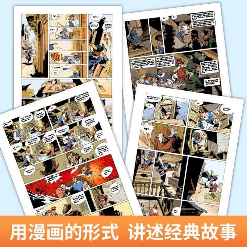 📚 (正版)漫画世界名著 三个火枪手(全4册) 适合小学生初中生看的课外书 三四年级上册下册课外阅读6年级学生漫画书适合小学生看