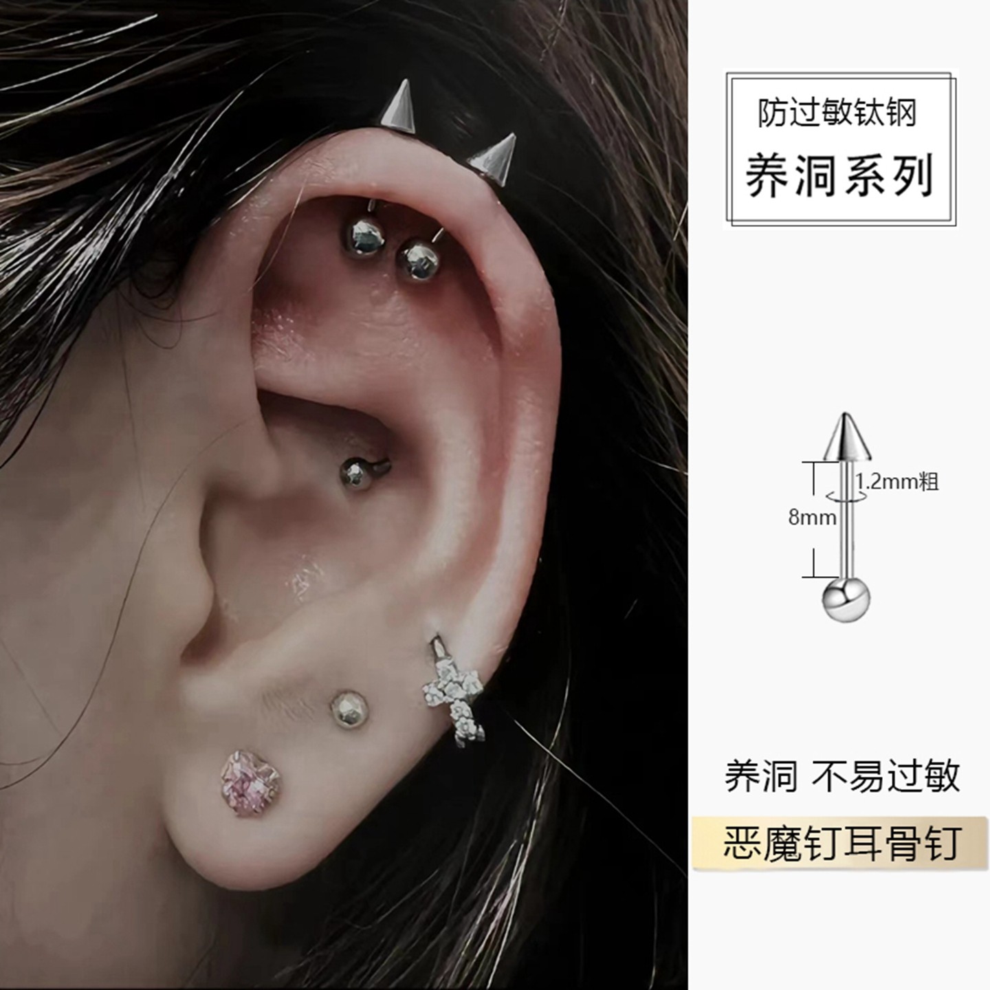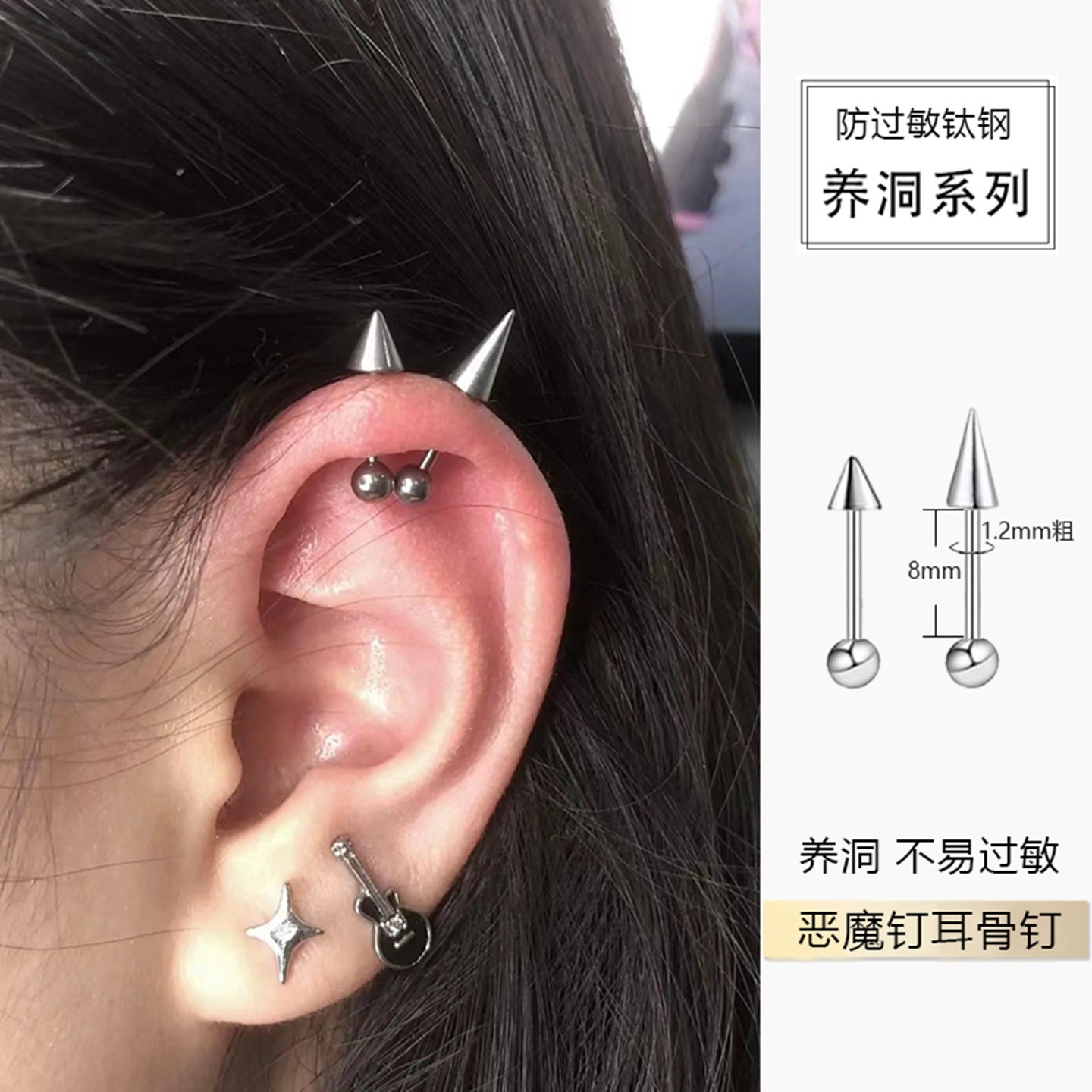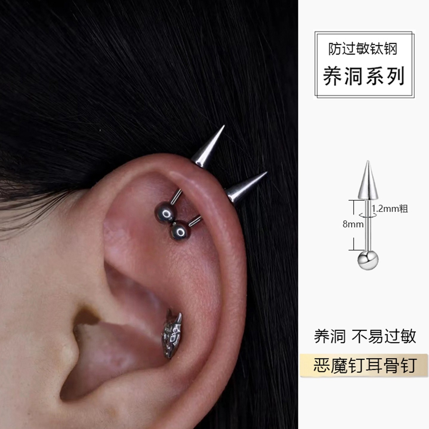 📚 双头尖锥耳骨钉恶魔角垂直helix耳钉高位上耳轮钉医用钛钢养耳洞