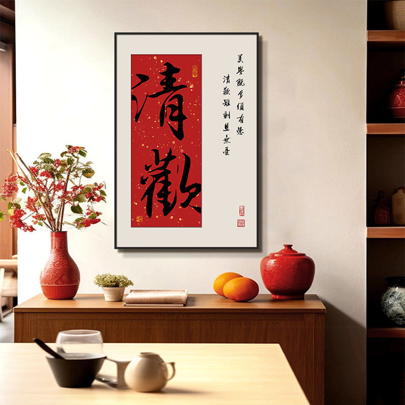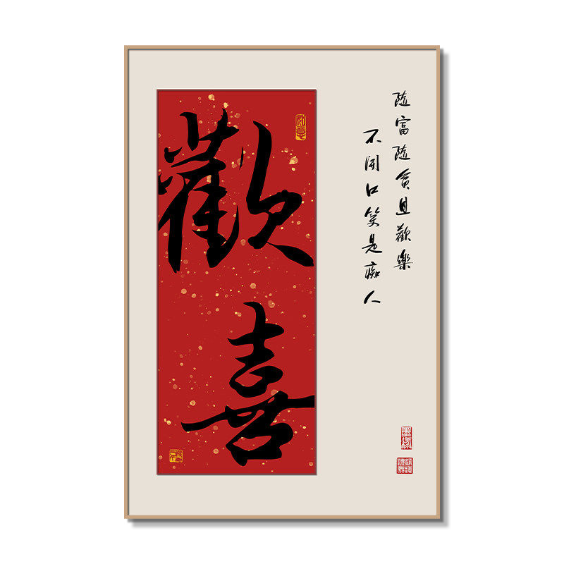 📚 定制欢喜国潮书法创意字画餐厅饭厅餐桌装饰画餐馆客厅高级感挂画