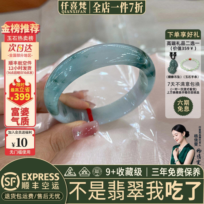 78¥ CA381 0Ud1URpXVs2¥ https://m.tb.cn/h.7IZZjNx 仟喜梵"祯祥吉庆"高端缅甸翡翠玉手镯子女款晴水冰种飘花正品处理 --------------------- 【原售价】924.6元 【现售价】924.6元。