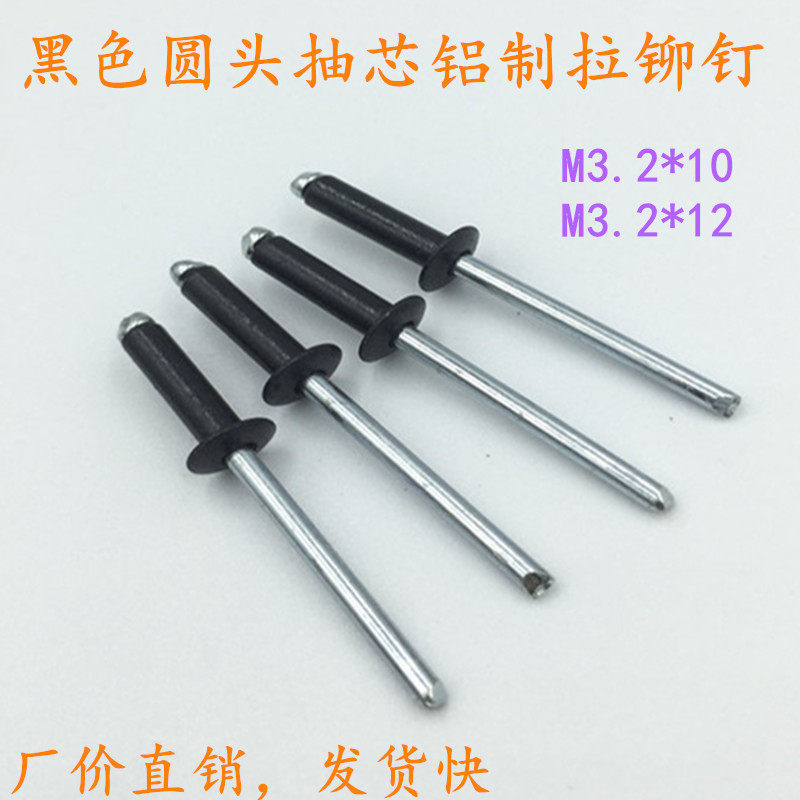 📚 圆头铝合金d开口烤漆烤黑抽芯铆钉平头铝制黑色拉钉拉柳钉卯丁五