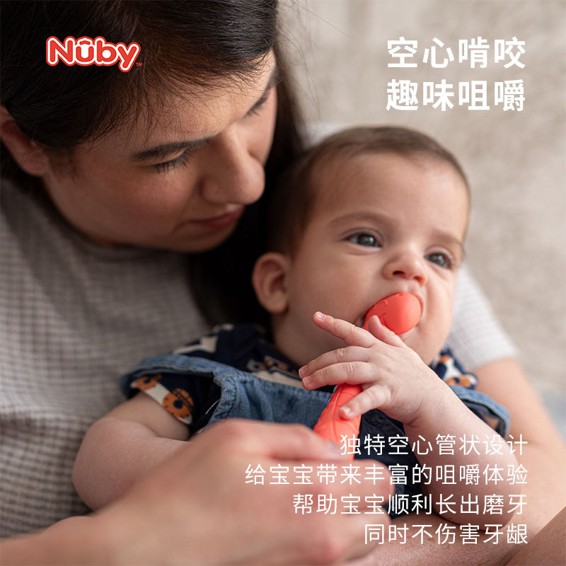 📚 Nuby努比空心感官长管牙胶2个装婴幼儿咬咬胶儿童益智婴儿防吃手