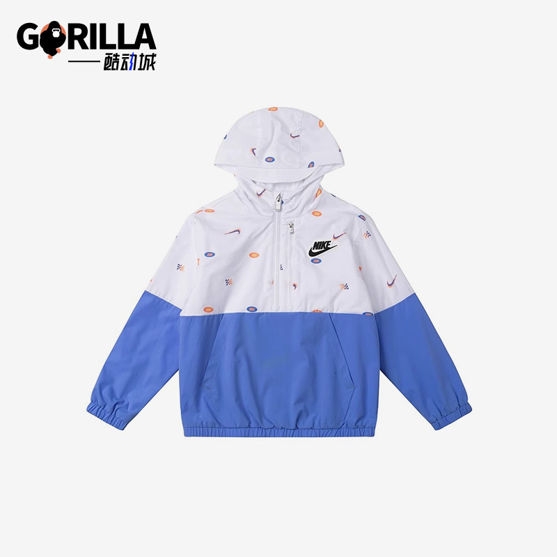 📚 Nike/耐克正品夏季款小童运动拼接印花连帽休闲外套HQ7954-410