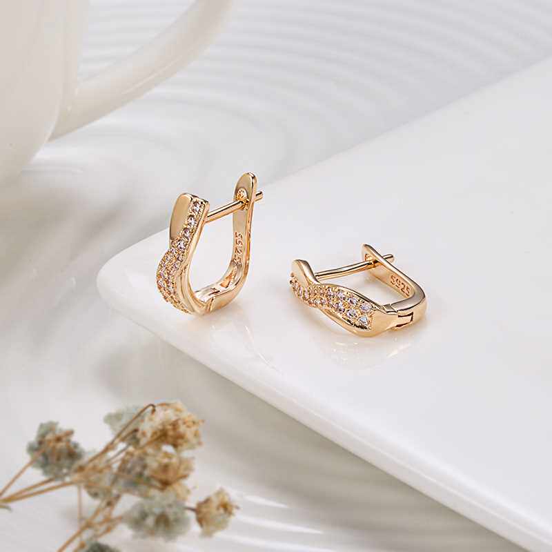 📚 585 Rose Gold Zircon Earrings Heart & Arrow Fashion Glos