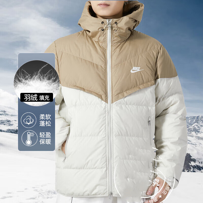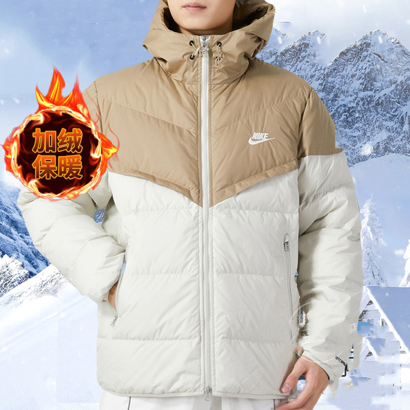 📚 耐克连帽羽绒服男装加绒运动服保暖防风棉服拼色卡其外套FB8178