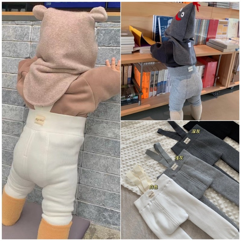 📚 秋冬款韩国新生儿背带裤婴儿举重裤大pp宝宝连裤袜婴幼儿高腰护袜