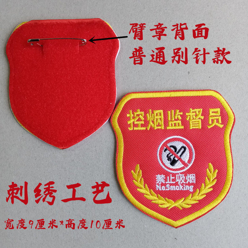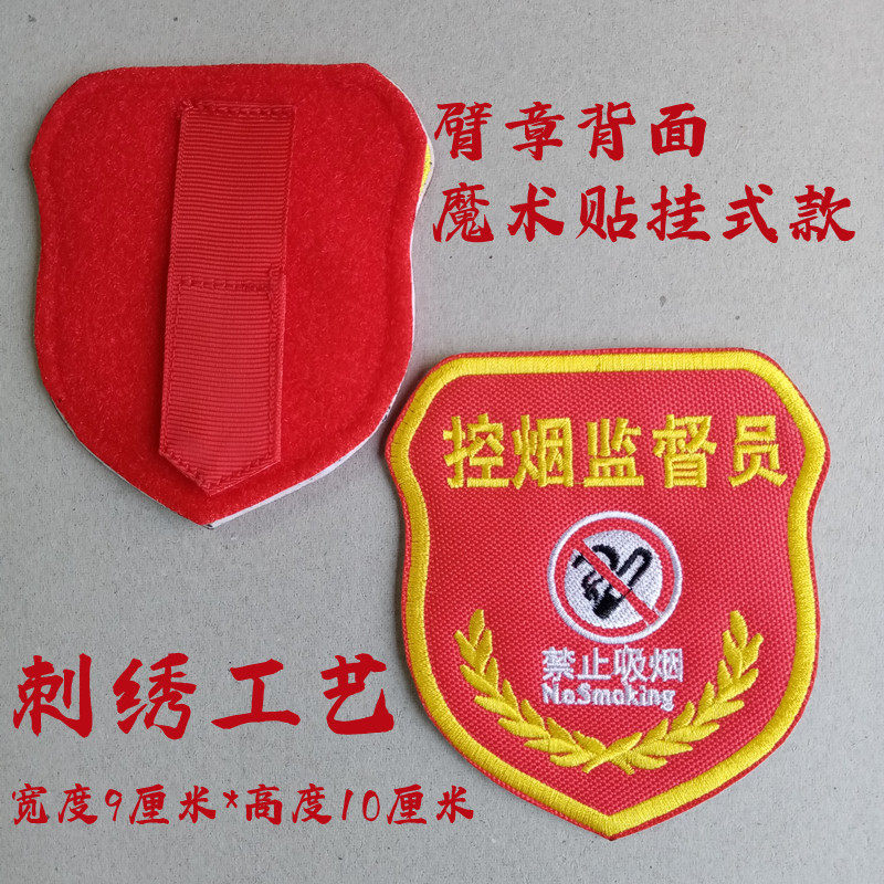 📚 控烟监督员臂章魔术贴刺绣臂标工作人员劝导勿吸烟红袖标现货袖章
