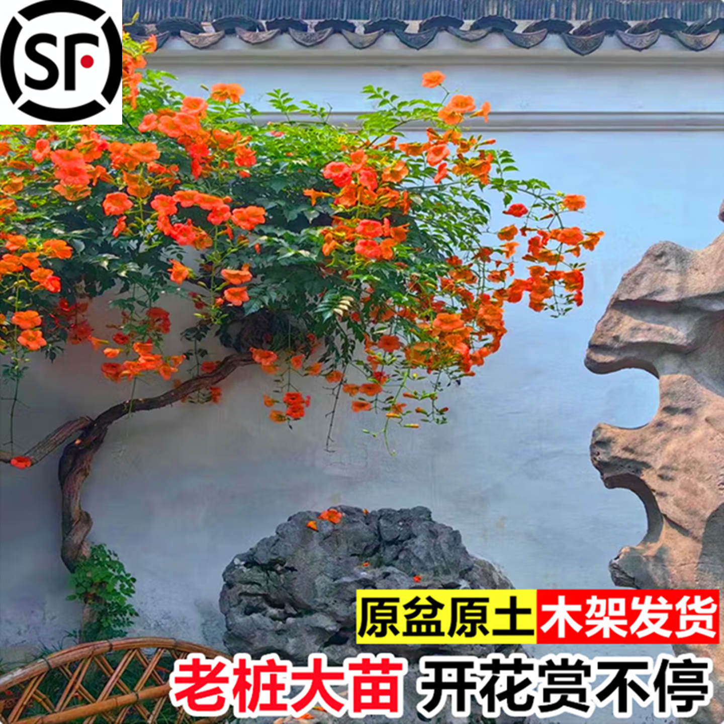 📚 凌霄花爬藤大苗特大号美国植物别墅庭院风景树廊架易活花卉老桩