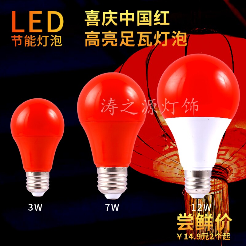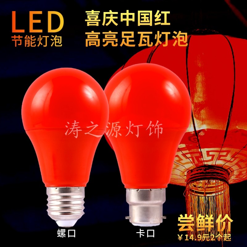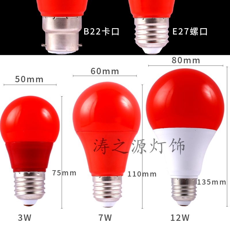 📚 LED大红色灯泡E27螺口B22插口灯笼专用户外喜庆灯7W节能光源佛堂