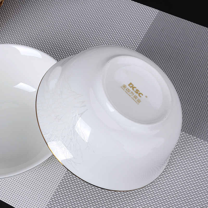 📚 金四方唐山骨质瓷春意自由搭配骨瓷碗盘调羹勺子电光金可微波餐具
