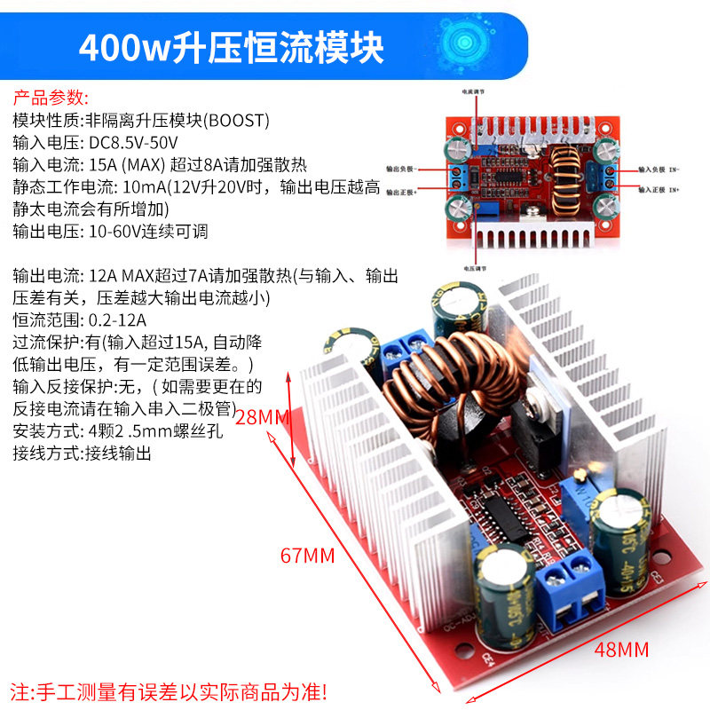 📚 400W15A升压变换器DC直流恒流电源变压器10V-60V可调升压电源模块