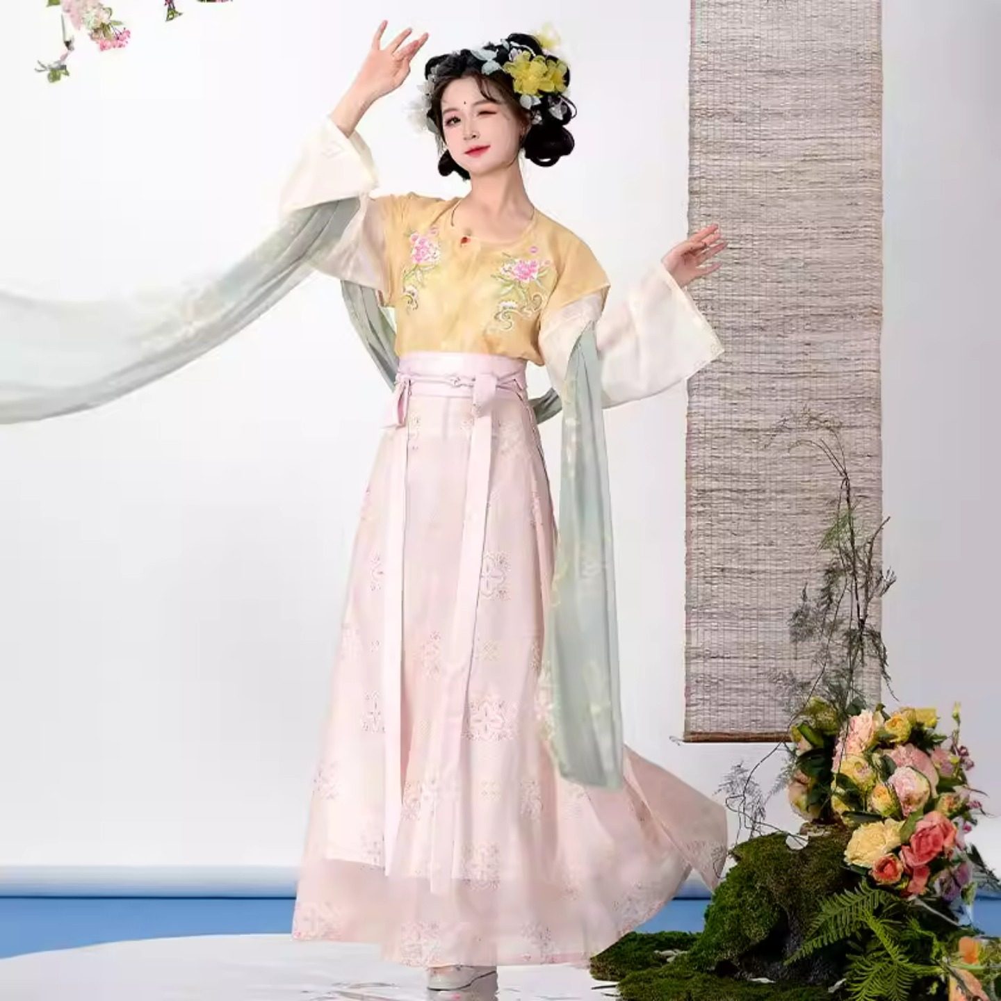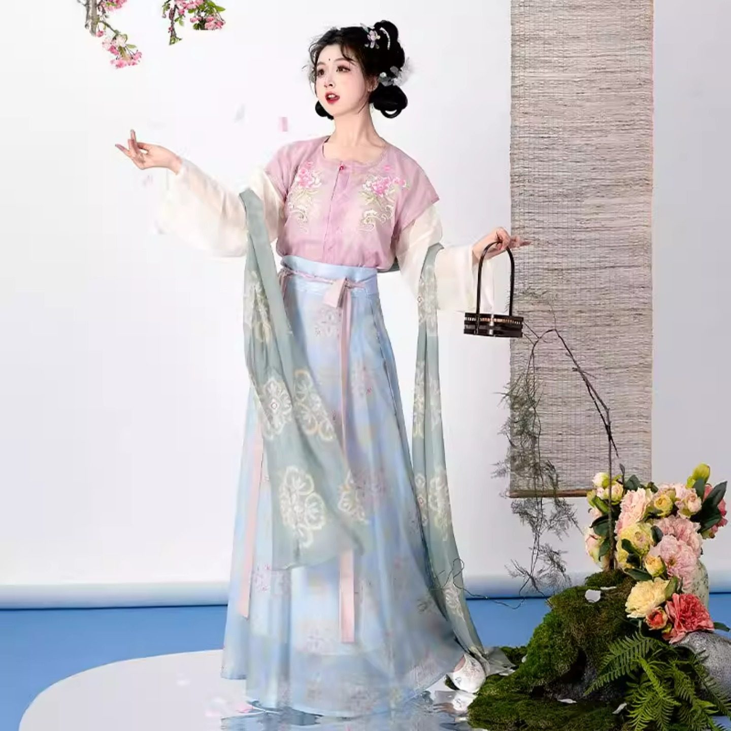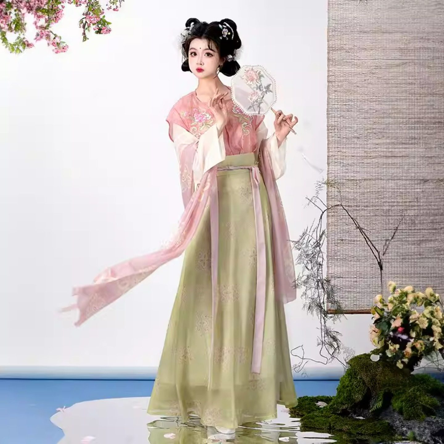 📚 【韶华】唐制汉服女绣花唐褙子圆领衫齐腰八破裙春夏日常一整套