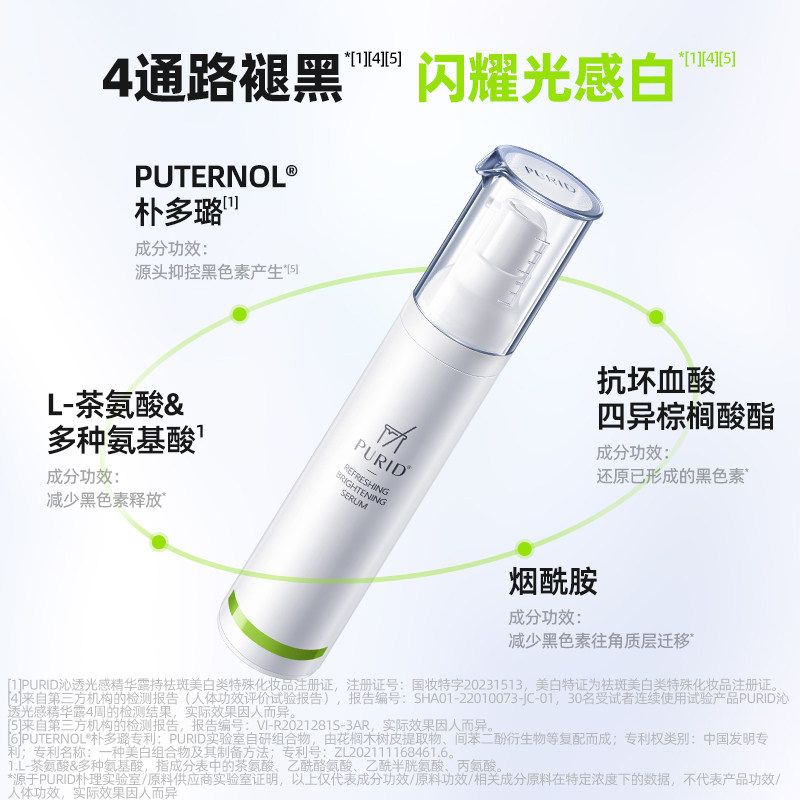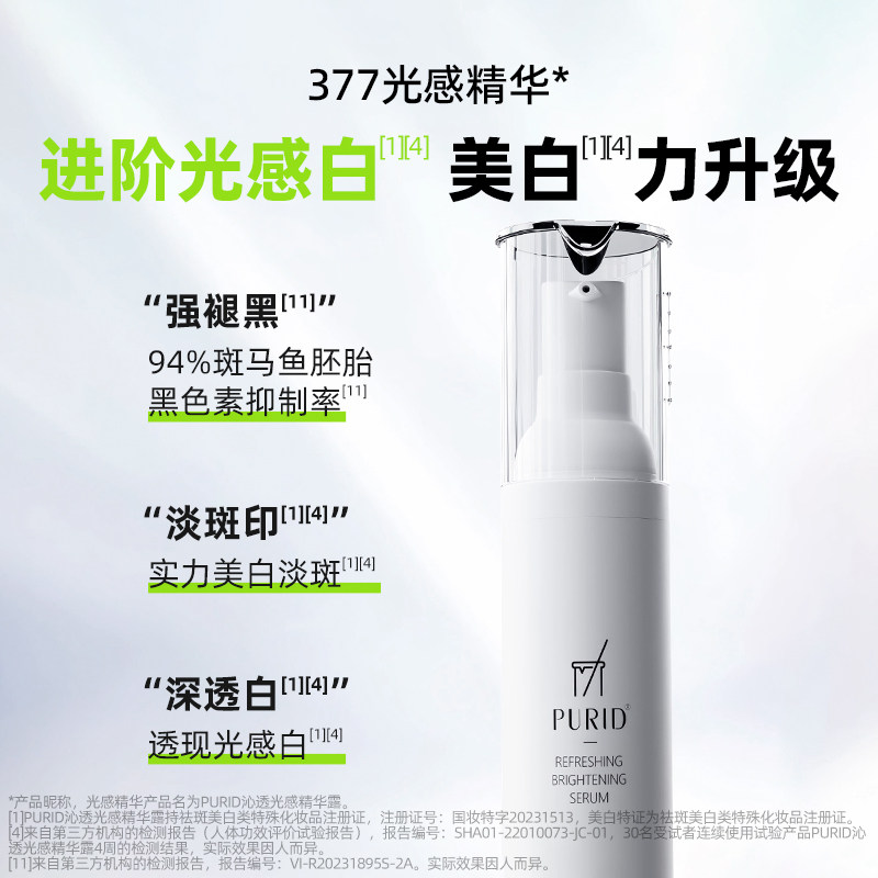 📚 PURID朴理沁透光感精华露377美白精华 祛斑提亮肤色