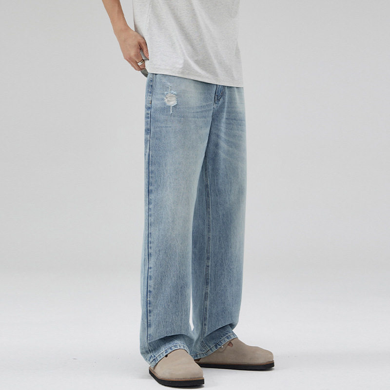 📚 south life春夏复古水洗冰蓝色牛仔裤男直筒简约百搭宽松裤男女