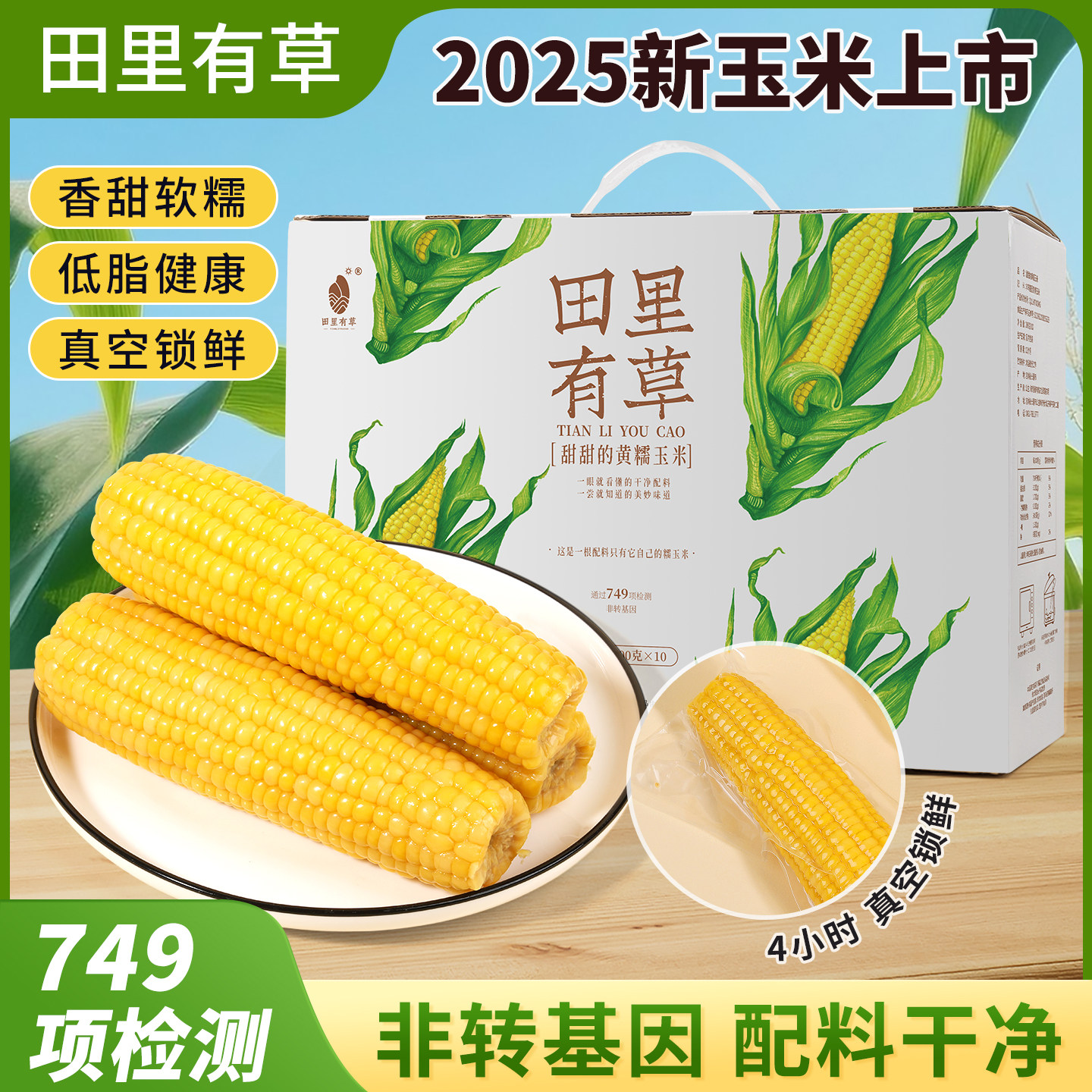 📚 田里有草东北吉林黄糯玉米真空包装新鲜玉米早餐苞米甜田苞黑玉米