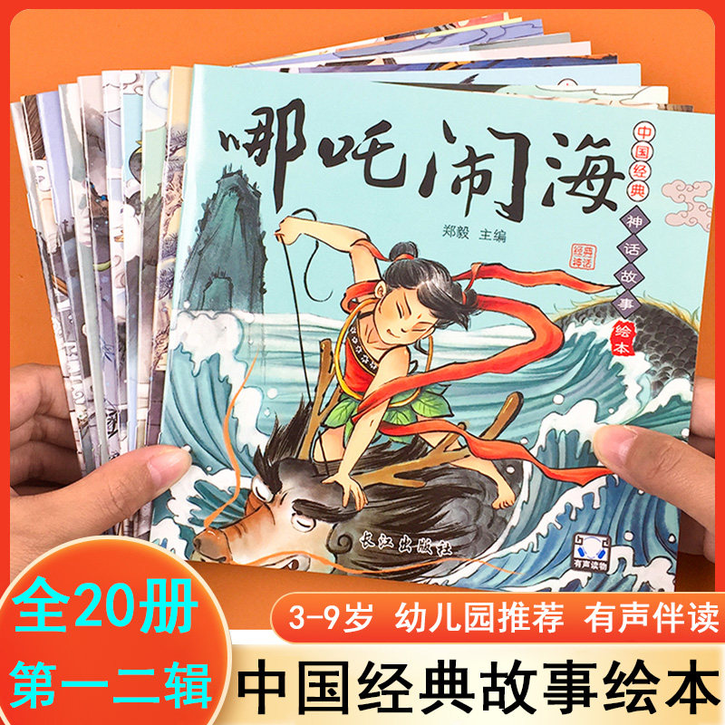 📚 中国经典神话故事绘本 第一二辑 全20册 彩色注音有声伴读 哪咤闹海夸父追日女娲造人 2-6岁儿童宝宝古代寓言神话绘本睡前故事书籍