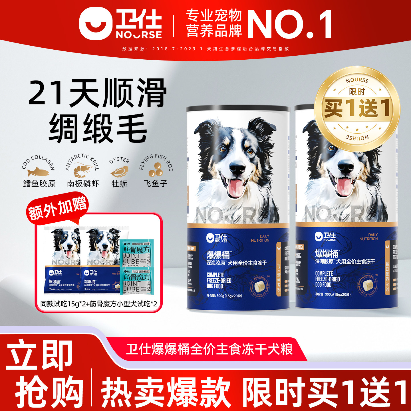 📚 【买1送1】卫仕爆爆桶狗狗主食冻干生骨肉深海磷虾x鳕鱼x飞鱼子