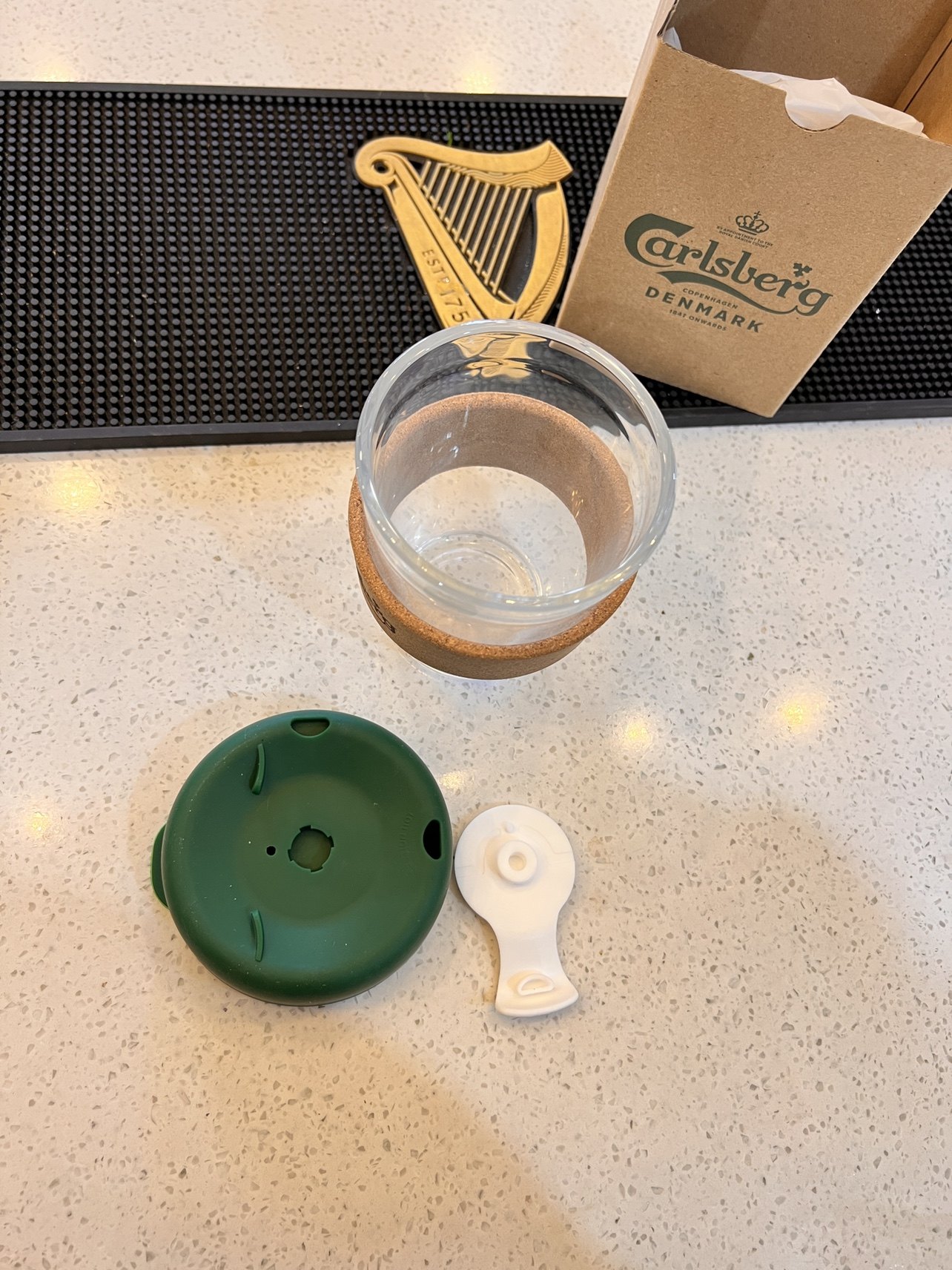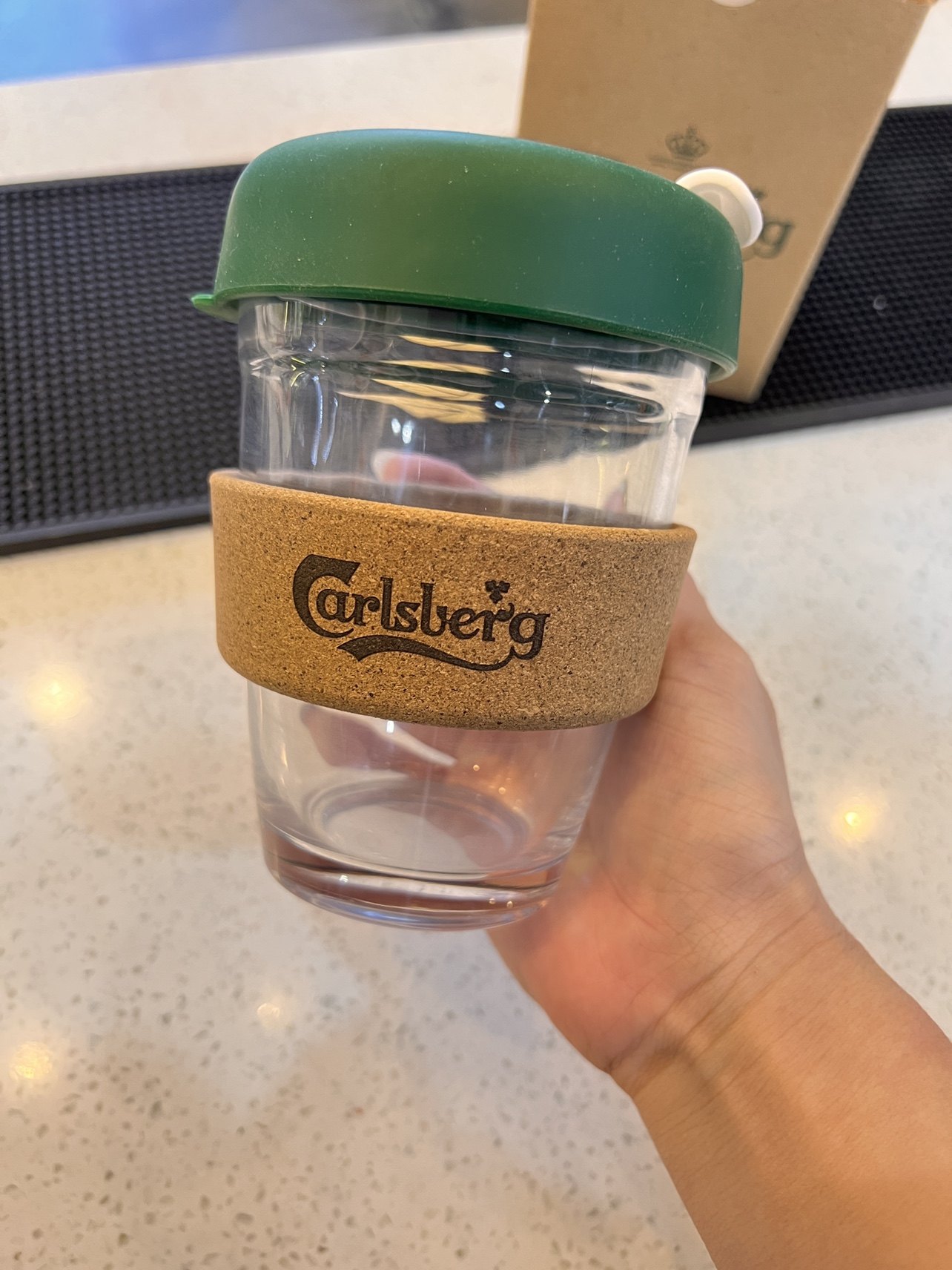 📚 全新嘉士伯Carlsberg食品级玻璃咖啡杯coffee软木套硅胶盖350ml