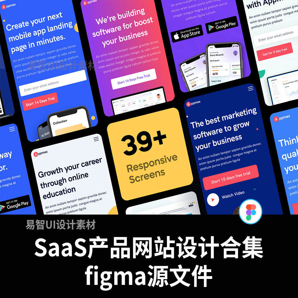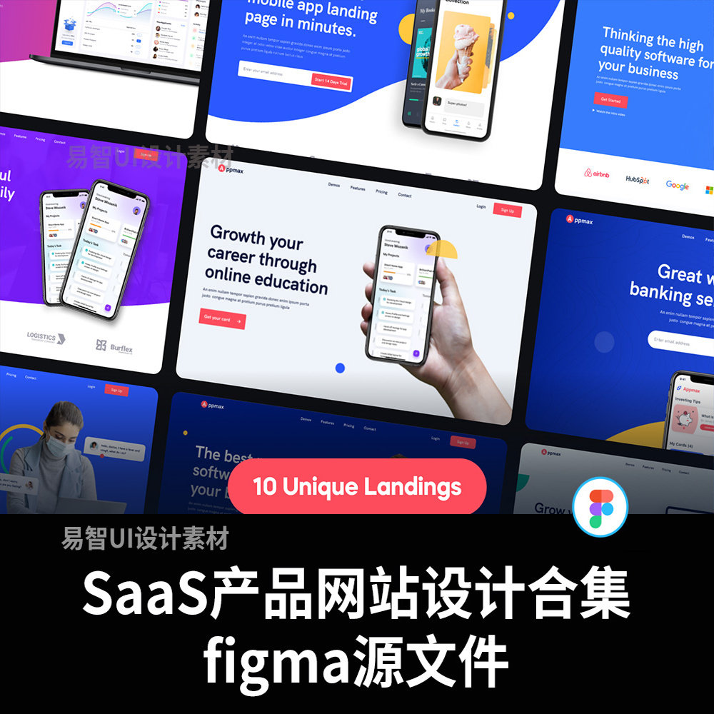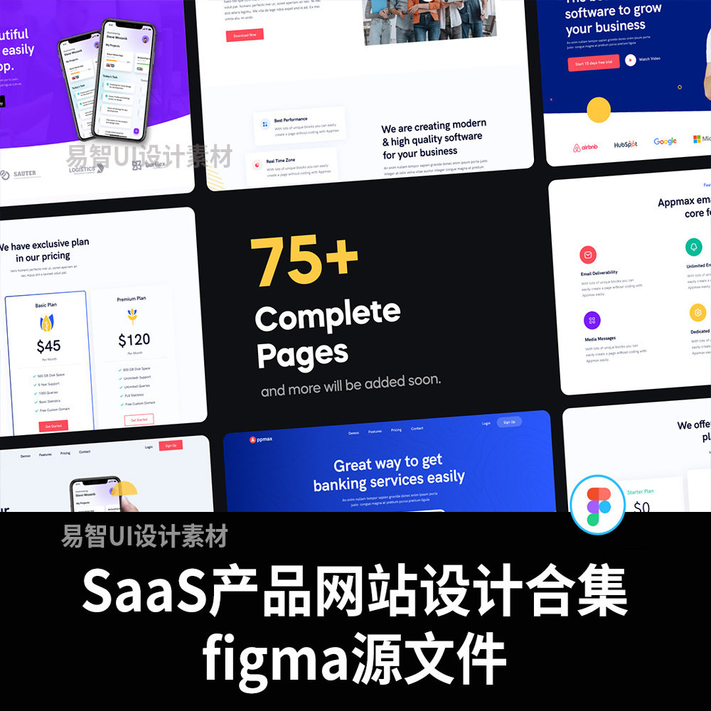 📚 响应式10个首页,38个内页SaaS,软件产品网站设计fimga源文件
