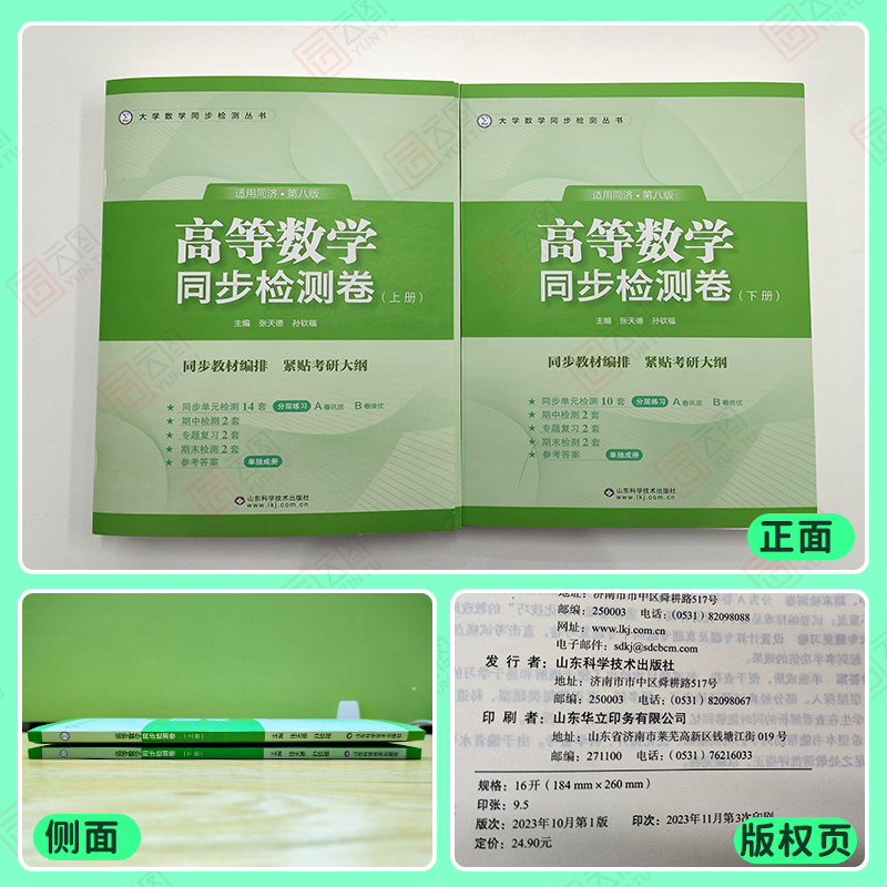 📚 【现货正版】高等数学同济八版上册下册同步辅导同步检测卷张天德大一教材高数同济大学第8版同步辅导及习题集全解练习题册指南