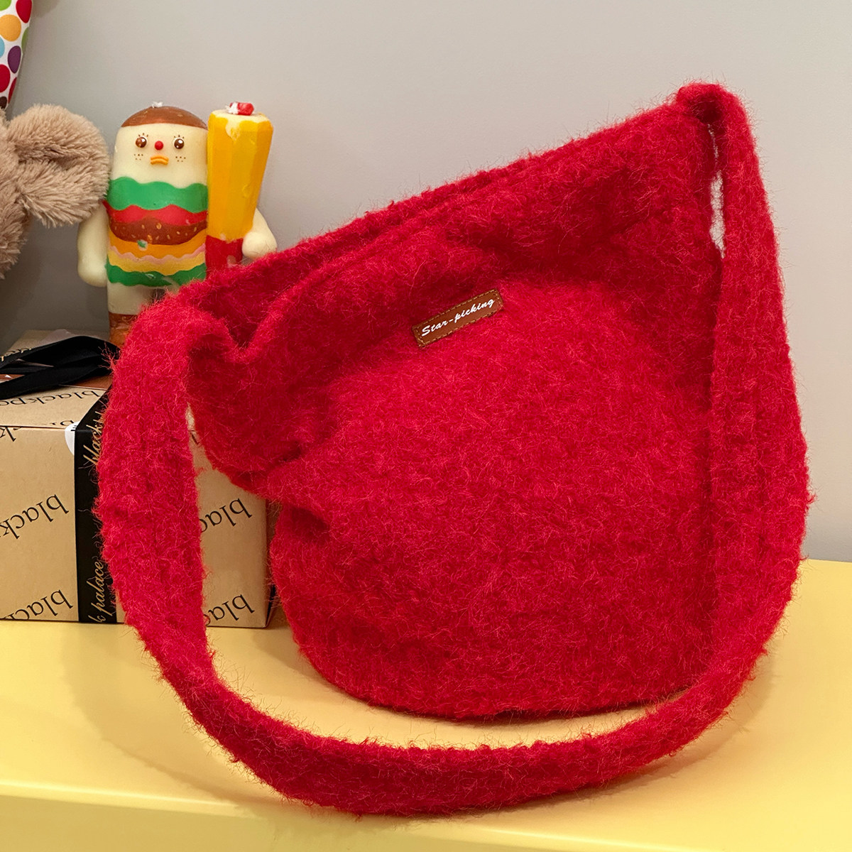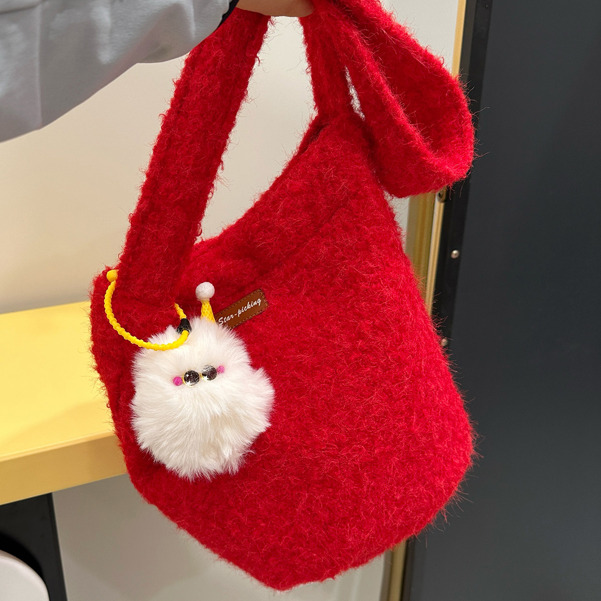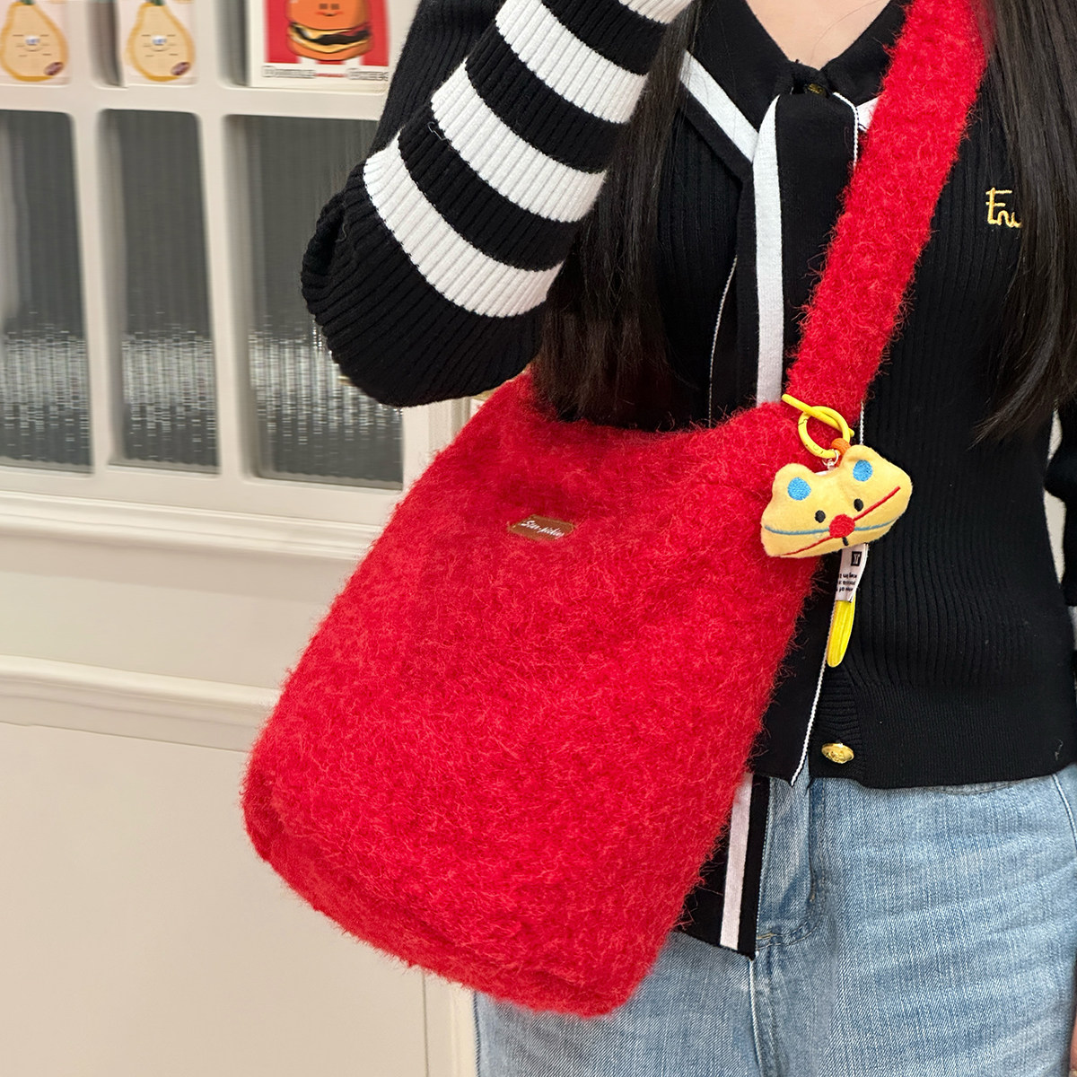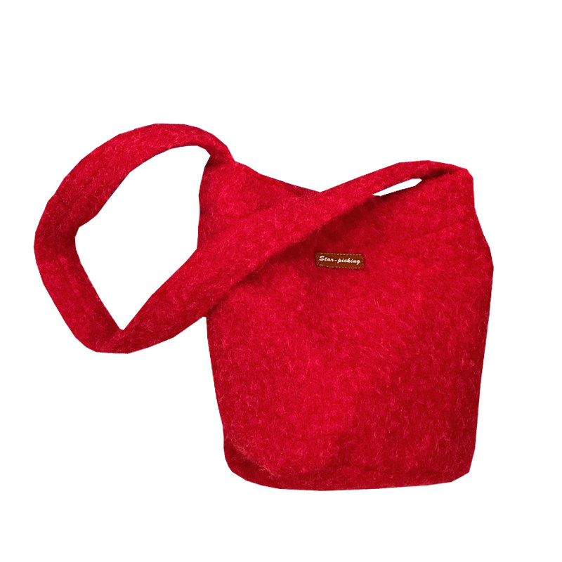 📚 韩版ins风复古毛绒绒水桶包 秋冬简约百搭单肩包学生党斜挎包包女