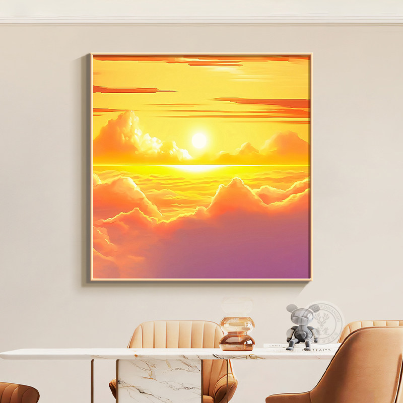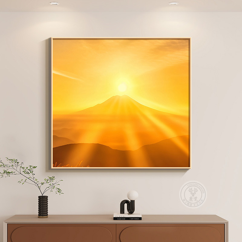 📚 旭日东升餐厅装饰画客厅东墙入户门玄关画日出东方正方形风景挂画