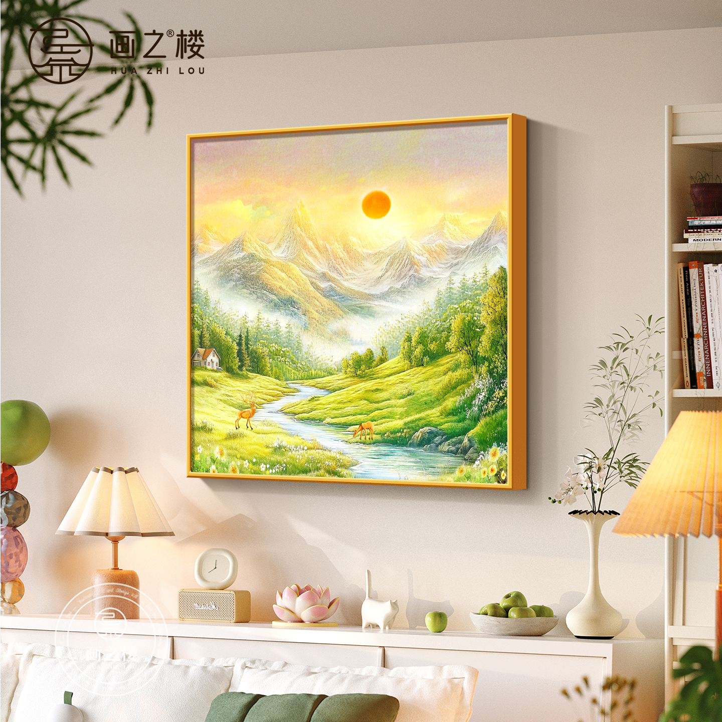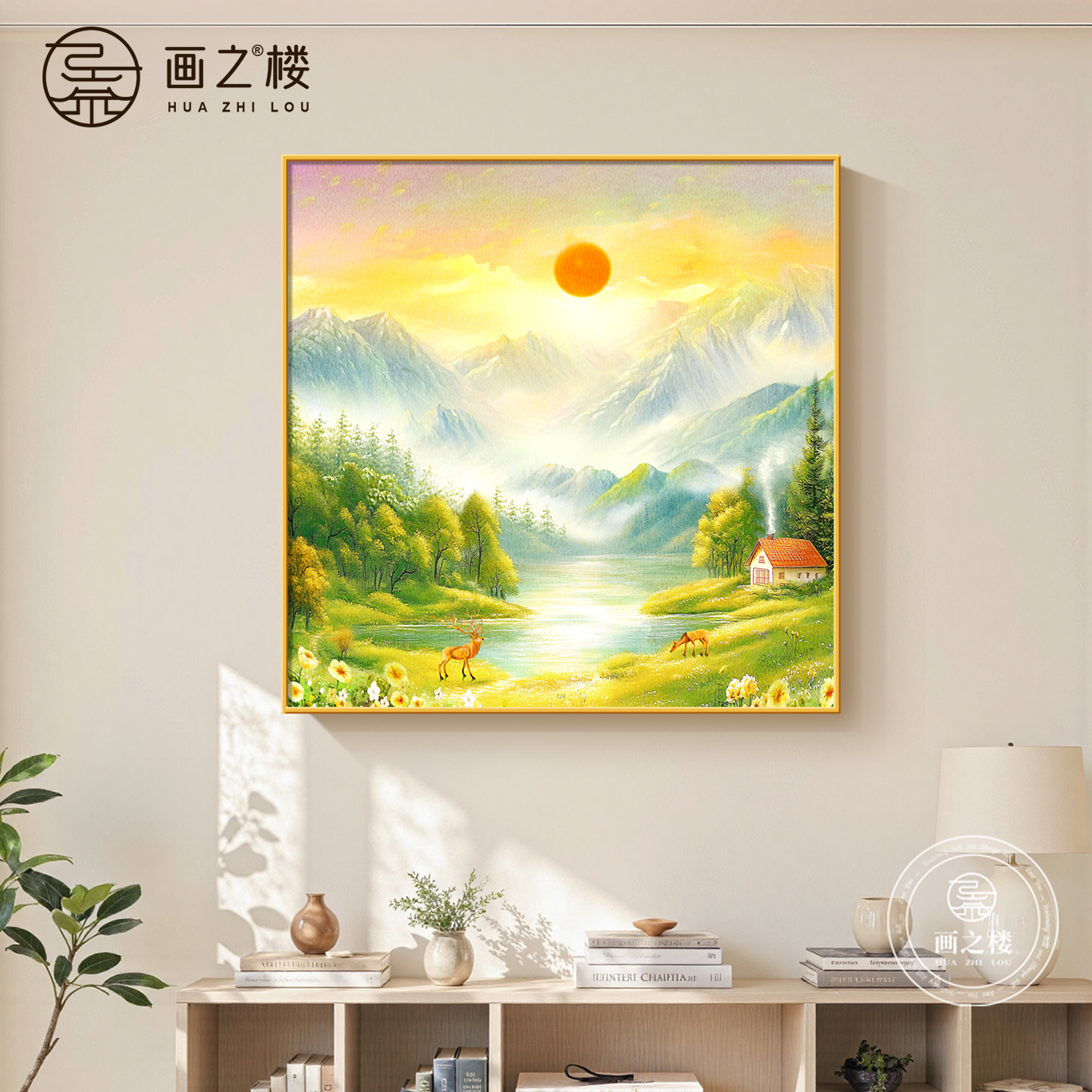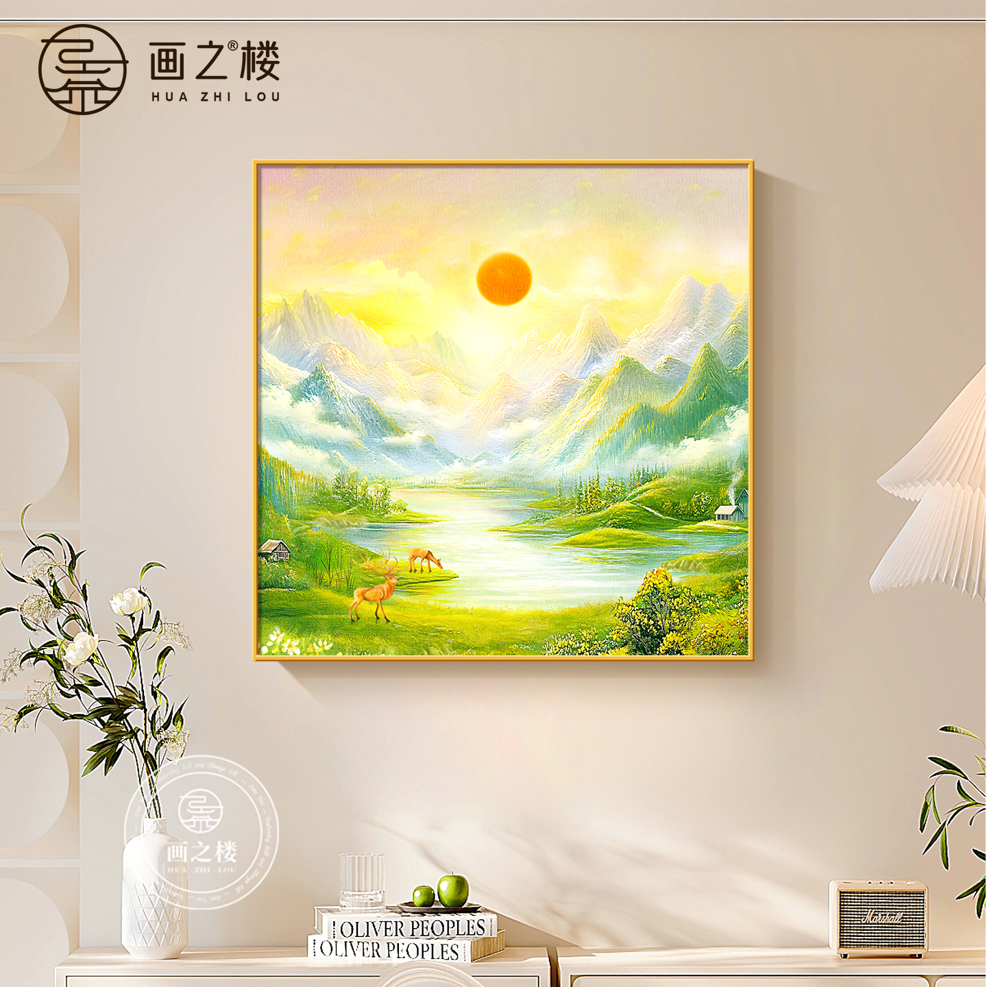 📚 旭日东升斗柜装饰画现代简约东墙聚财山水画高档日出东方客厅挂画
