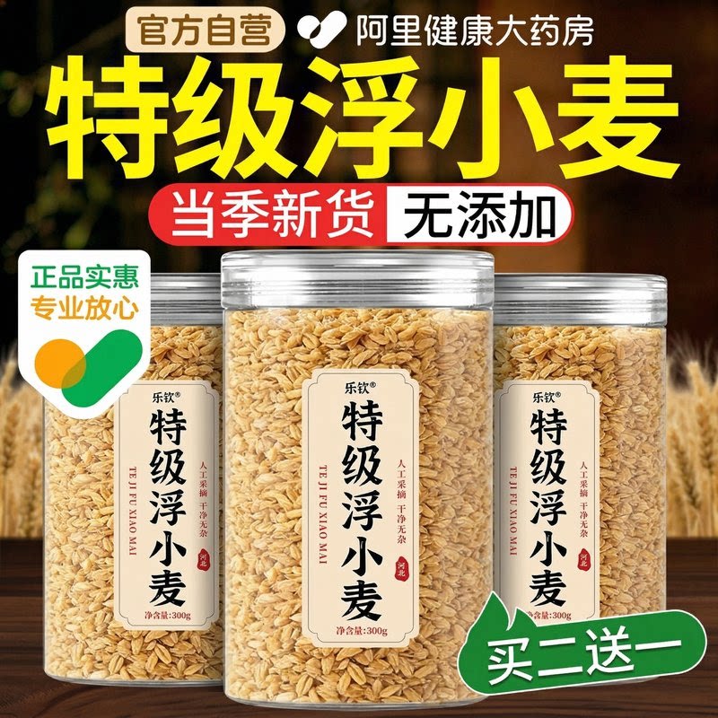 📚 特级浮小麦中药材官方旗舰店正品闷热易出汗动则汗多当季新货300g