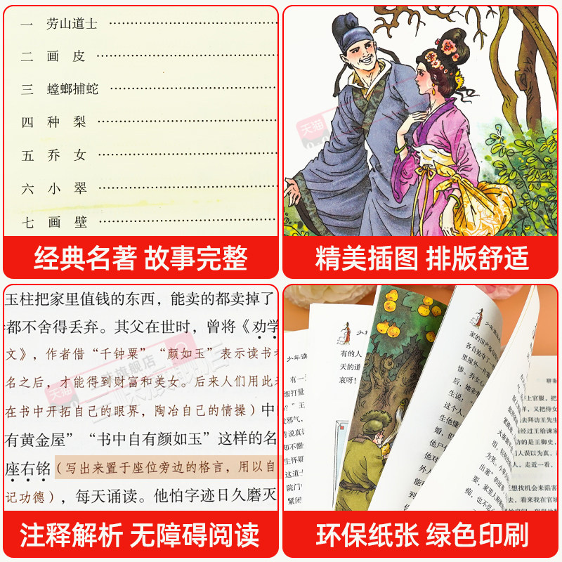 📚 聊斋志异原著正版书青少年儿童版白话文小学生版 三四五六七八九年级必读课外书初中生阅读书籍明清中国古典小说全集罗刹海市选