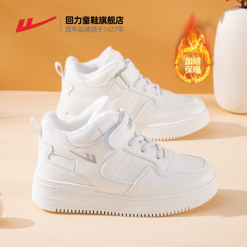 📚 回力儿童加绒棉鞋2025年冬季新款男童冬鞋高帮女童二棉鞋小白鞋子