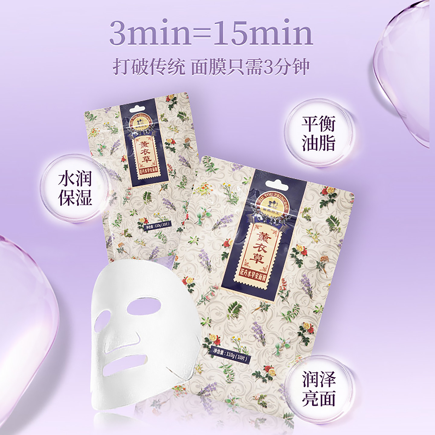 📚 解忧公主薰衣草花卉水早安面膜10片装免洗补水滋润精油官方旗舰店