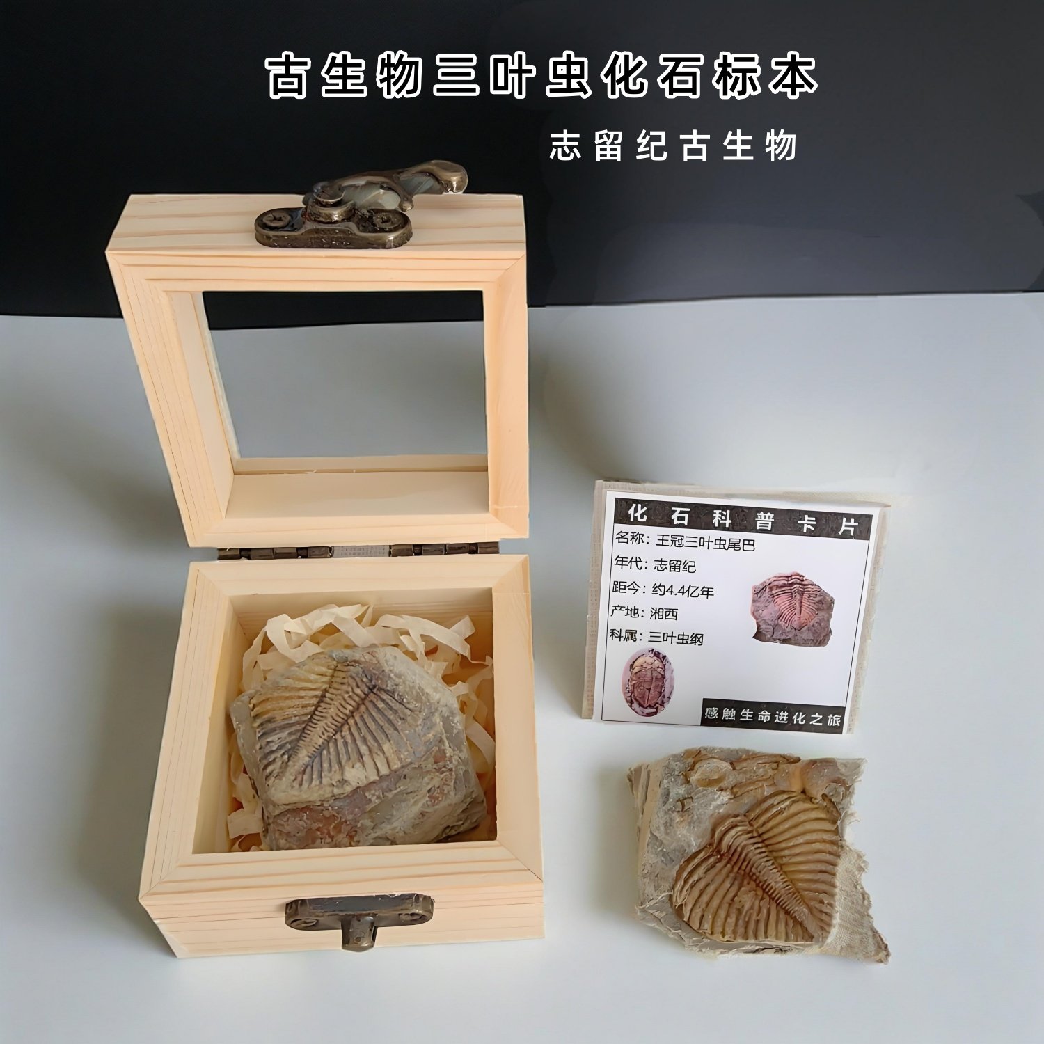 📚 天然湘西志留纪古生物王冠三叶虫尾巴化石标本原石科普礼物盒摆件
