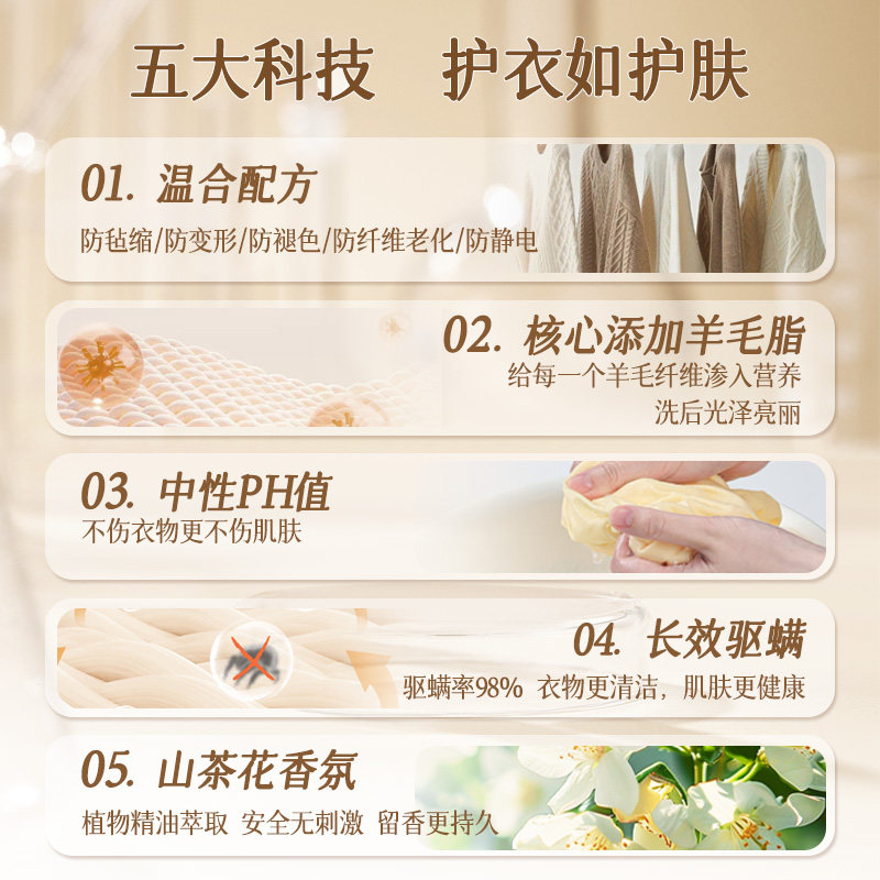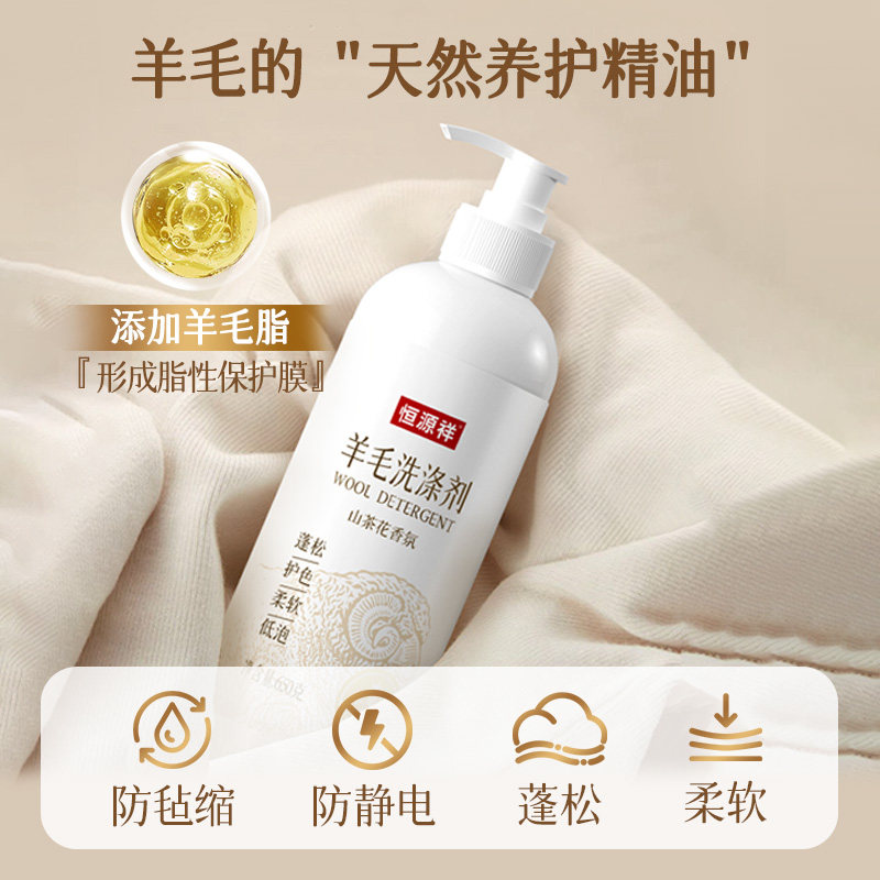 📚 恒源祥羊绒羊毛专用洗涤剂可机洗防毡缩蓬松柔软护形羊毛衫清洗剂